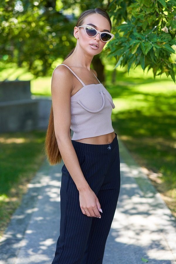 Современный кроп-топ, выполнен из трикотажа, незаменимая базовая вещь гардероба любой модницы. Детали нашей новой ультрасовременной модели: открытые плечи, спинка - майка, эластичное основание, декоративные элементы по передней части - подрезы с отстрочкой, повторяющие анатомию груди. Топ прекрасно сочетается и с офисным стилем, и с вечерним луком. Несомненно, эта деталь гардероба добавит изюминку в Ваш образ!