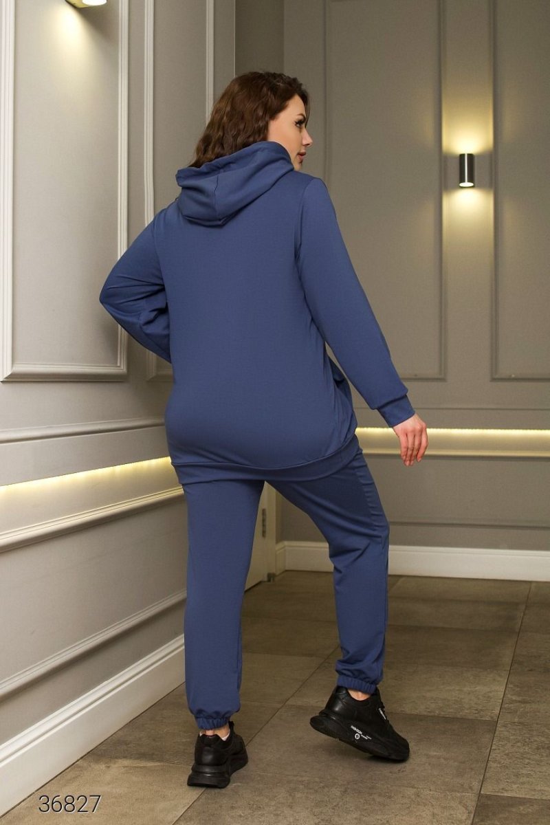 Костюм из качественного трикотажа двухнити. Худи с объёмным капюшоном с затягивающимся шнурком, боковые прорезные карманы, эластичные манжеты. Джоггеры с поясом и манжетами на резинке, боковые прорезные карманы.
