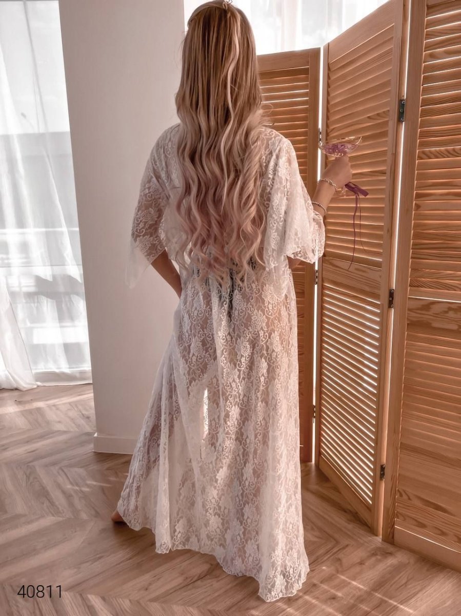 Пляжняа туника в пол. Ткань: гипюр (вискоза + полиэстер). Дизайн узора может незначительно отличаться!