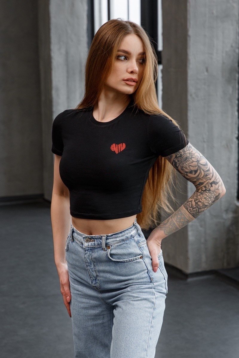 Укороченная облегающая футболка силуэта - идеальный выбор для создания современного и стильного образа. Выполнена из мягкого материала, который приятен на ощупь и обеспечивает комфортную посадку. Эта футболка отлично подходит для совмещения с джинсами или юбкой и станет незаменимой вещью в гардеробе каждой модницы. Измерения в нерастянутом состоянии