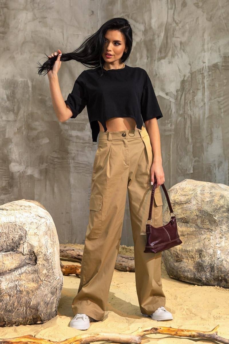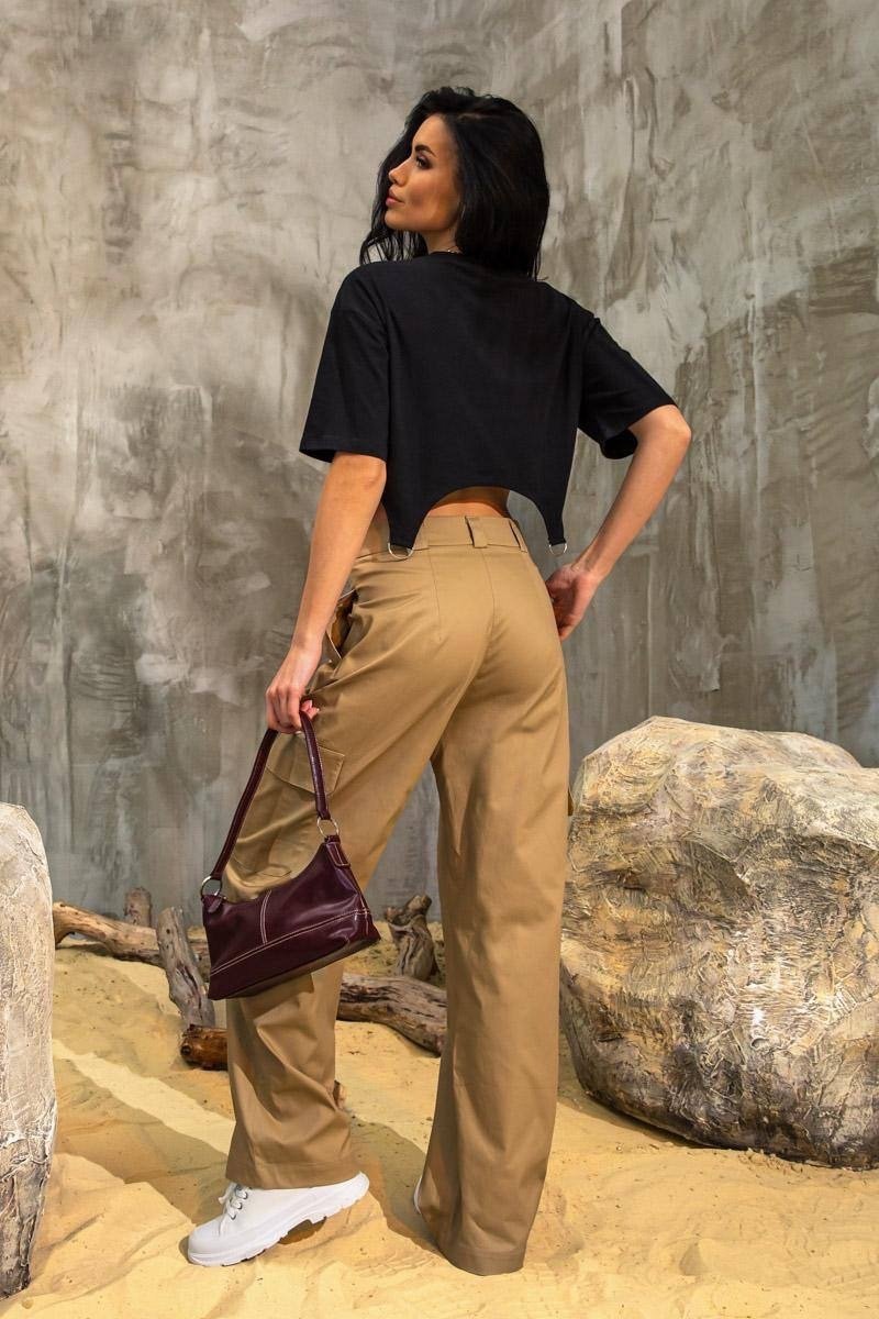Модная укороченная футболка свободного кроя с имитацией подтяжек. Стильная и очень комфортная вещь, сочетающаяся любым стилем одежды.