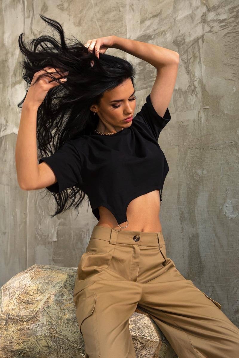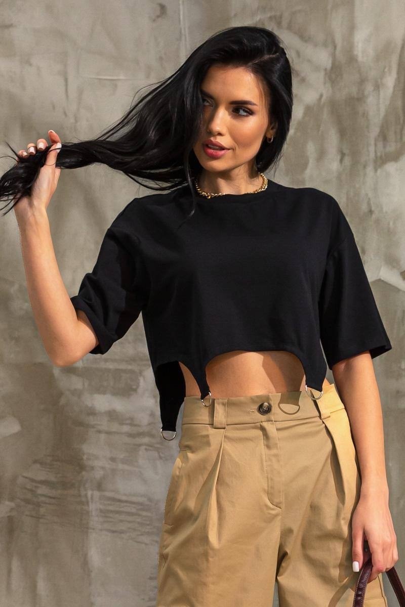 Укороченная футболка свободного кроя черная 8406