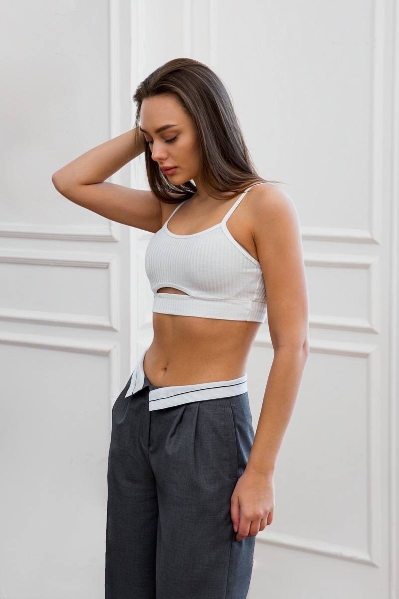 Укороченная майка в стиле белья из трикотажа рубчик 8394