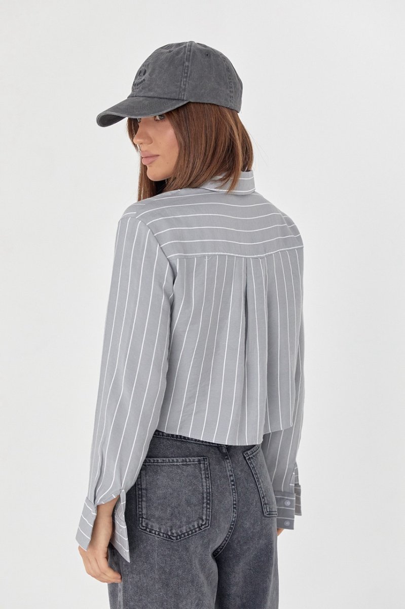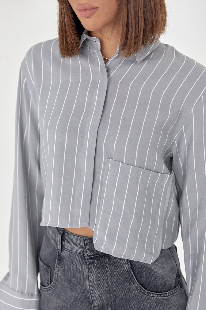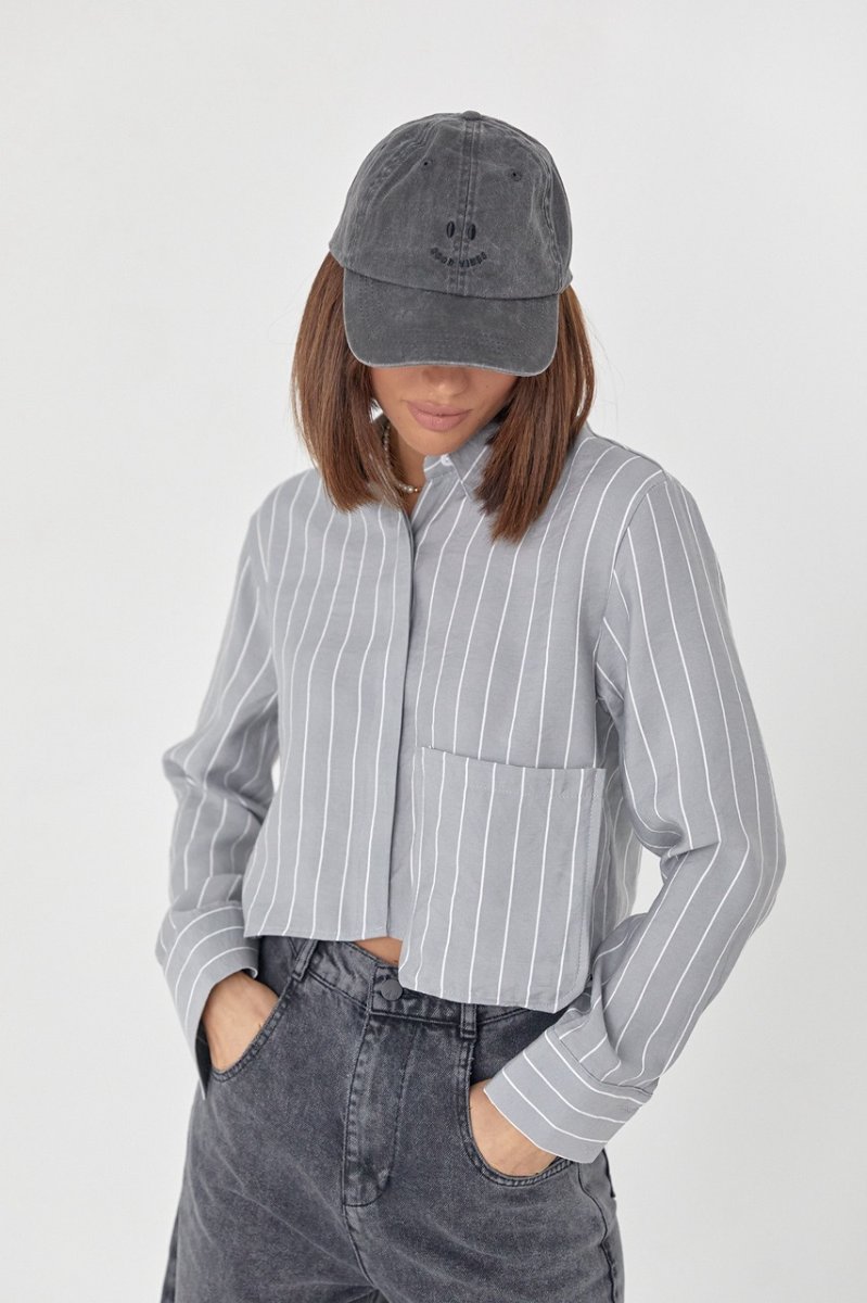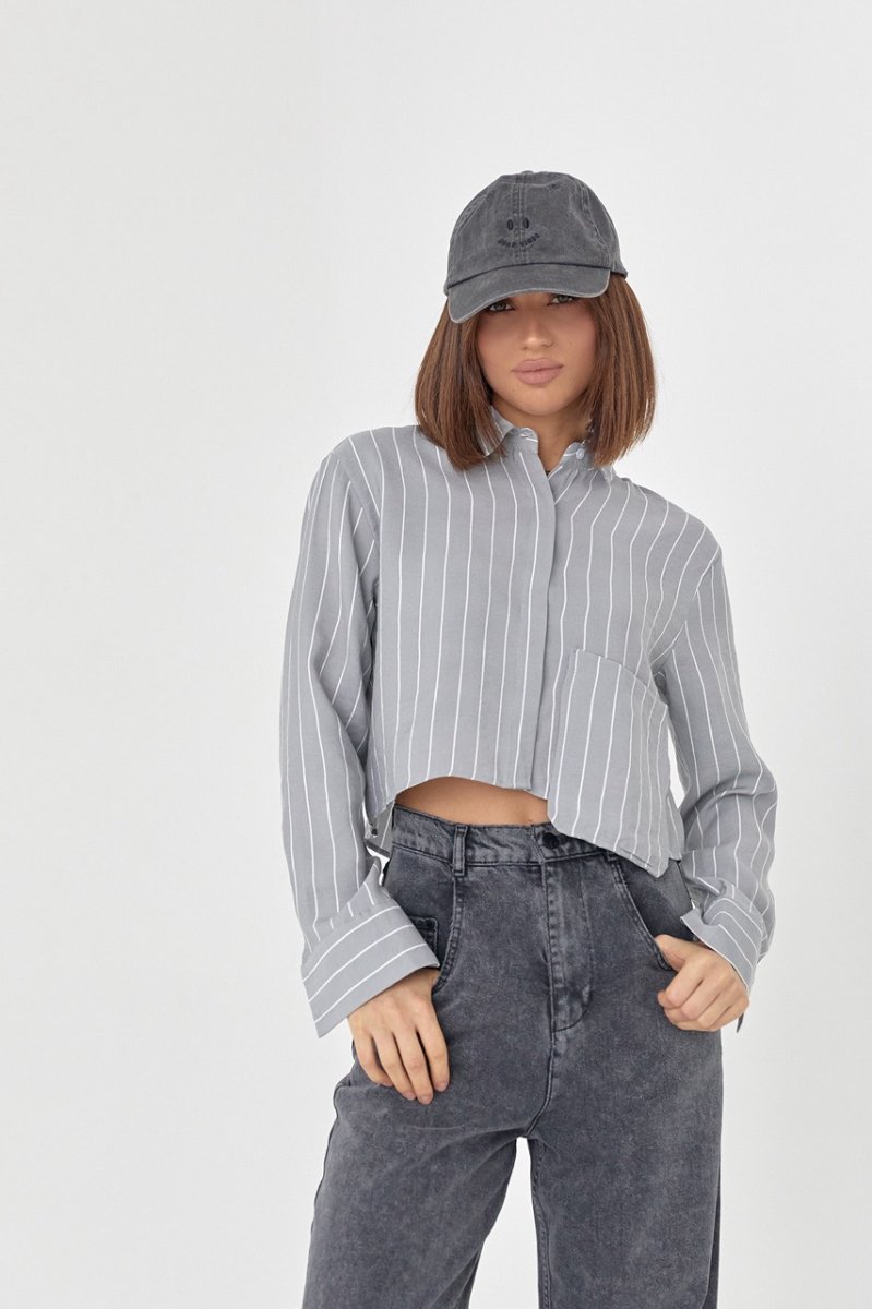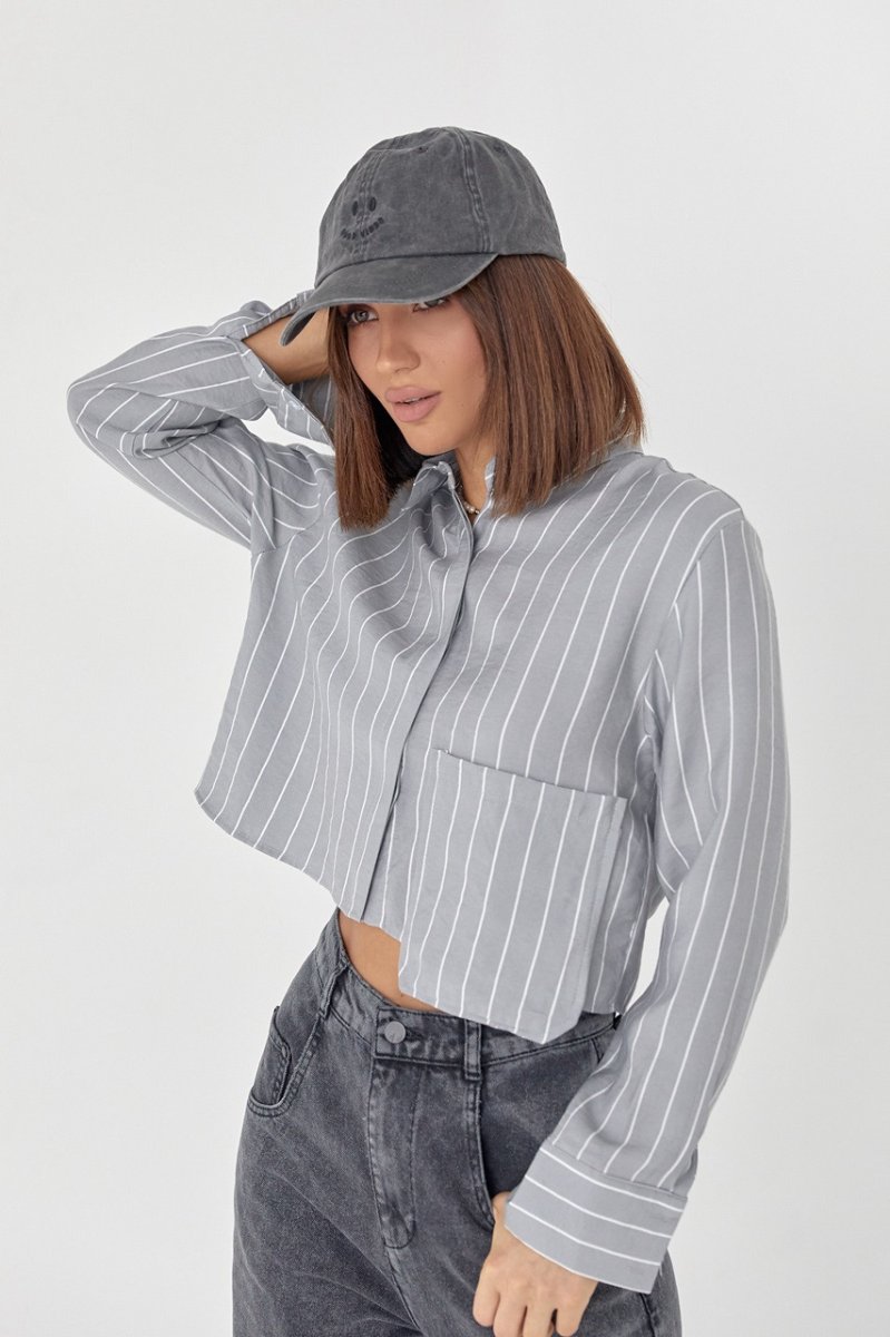 Если ты любишь штаны и юбки с высокой линией талии, тогда тебе точно пригодится укороченная женская рубашка в полоску.