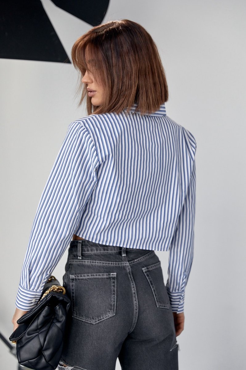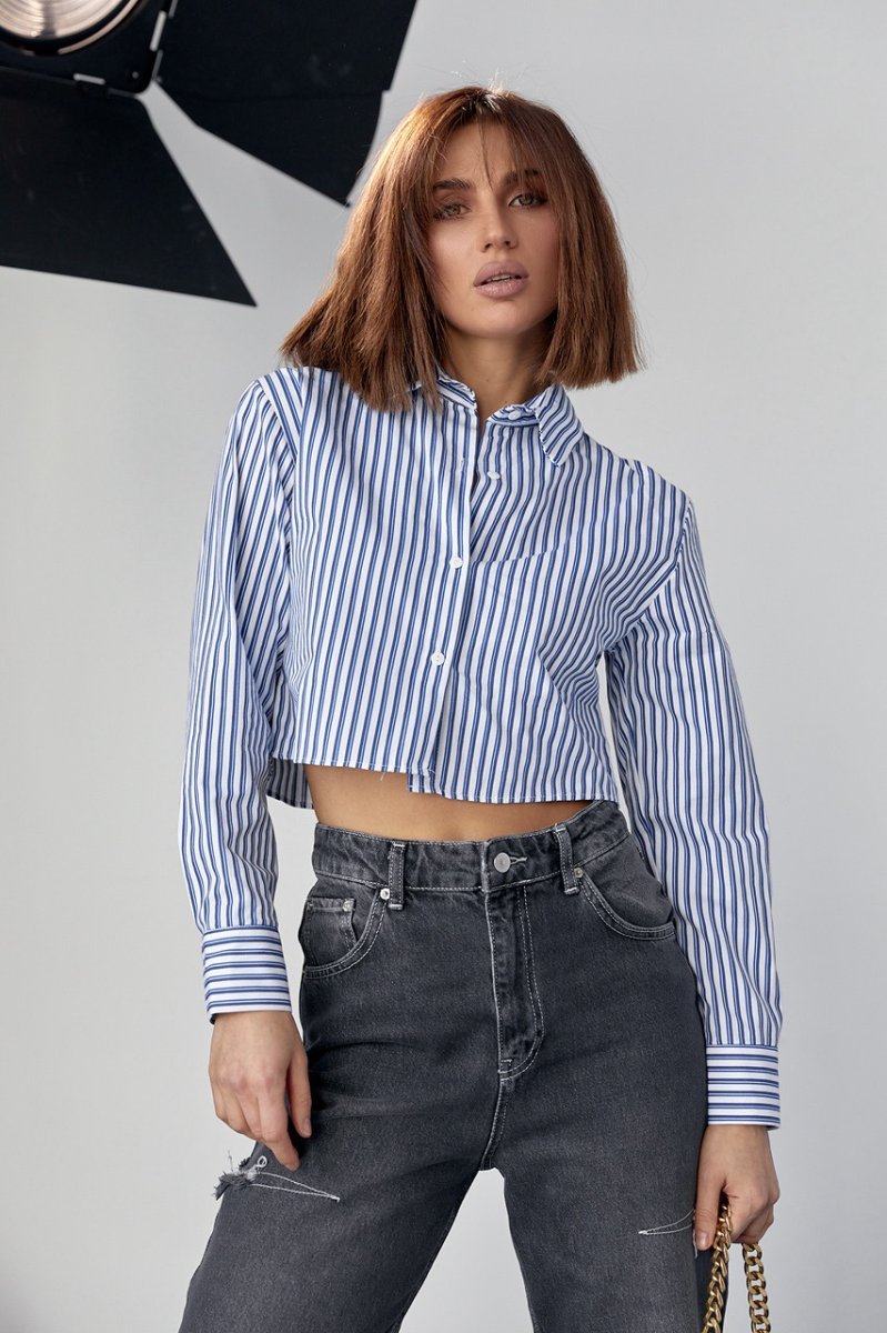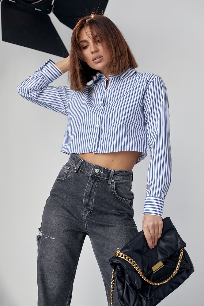 Укороченная полосатая рубашка женская станет главным акцентом ваших модных образов и в летний период, и в межсезонье.