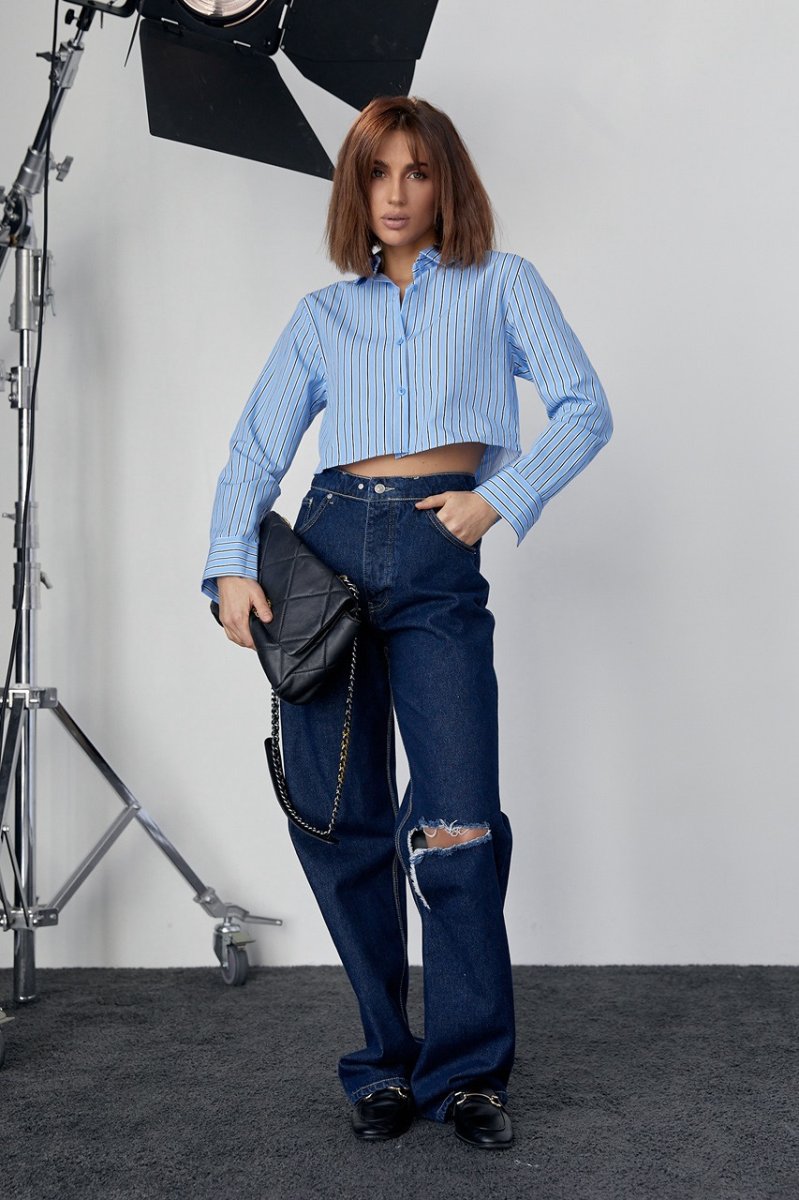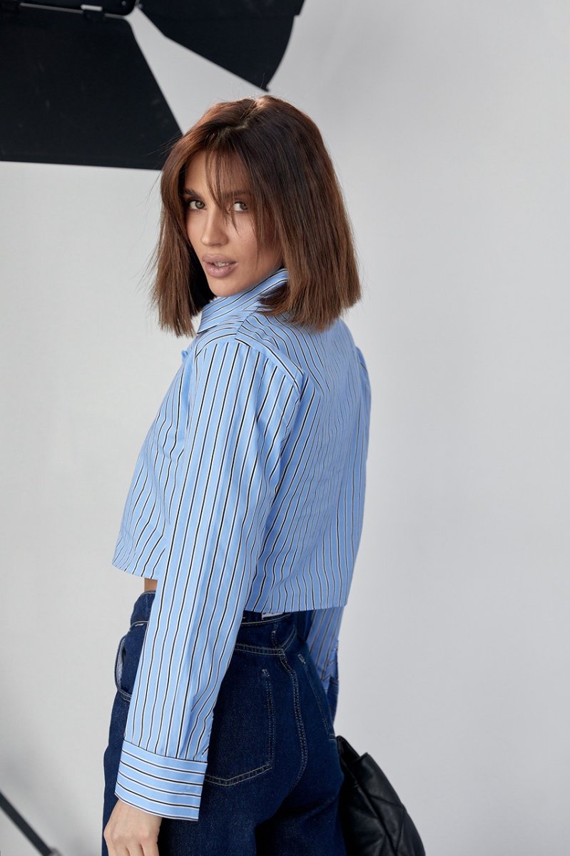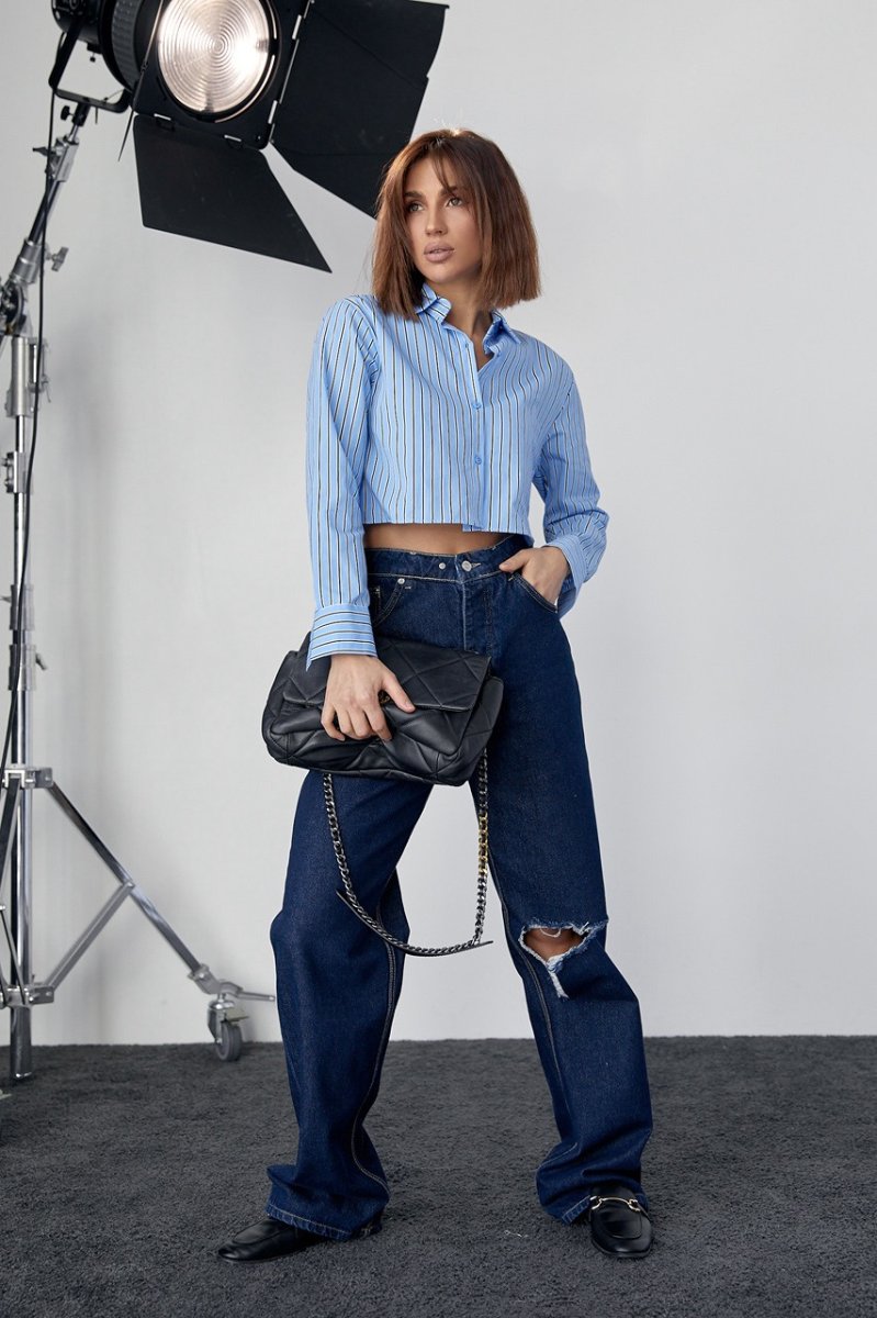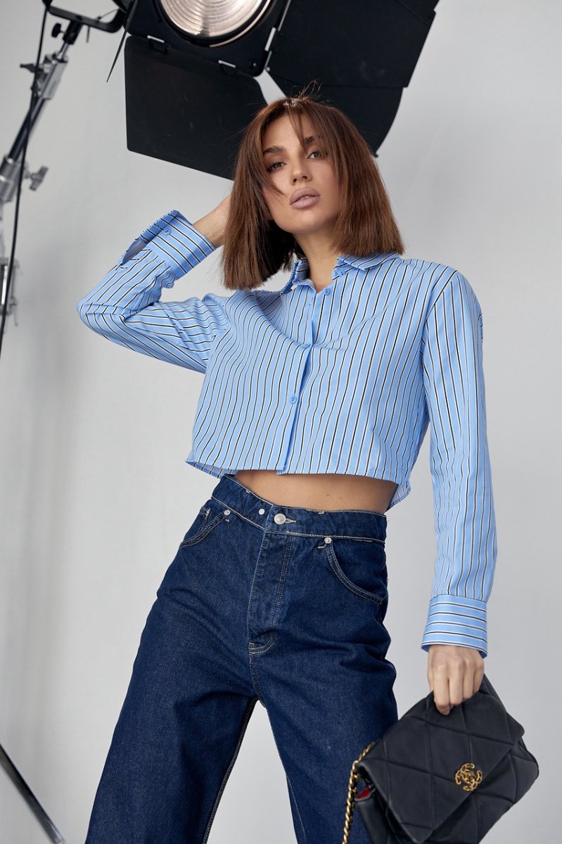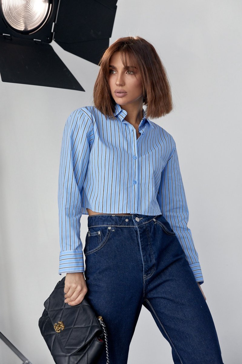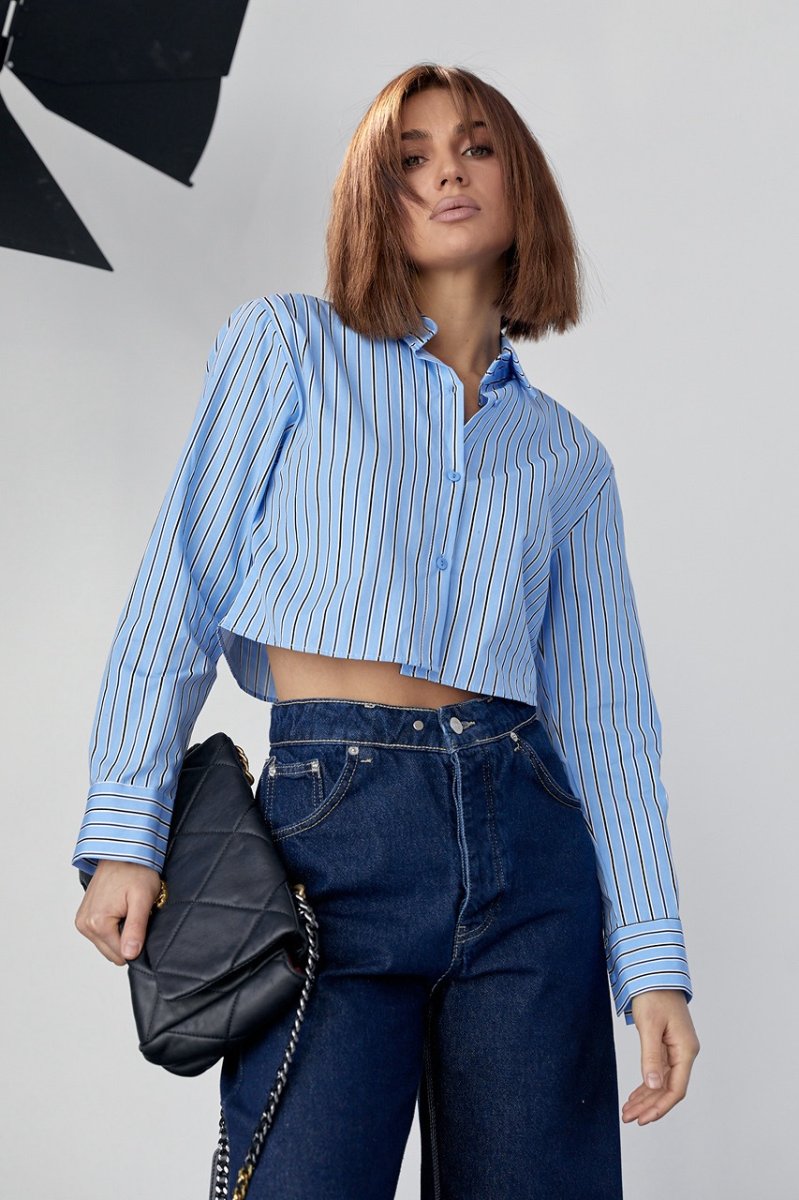 Укороченная полосатая рубашка женская станет главным акцентом ваших модных образов и в летний период, и в межсезонье.