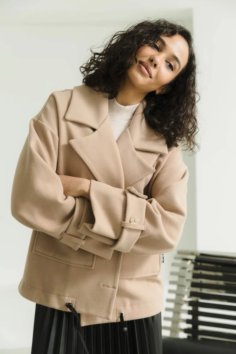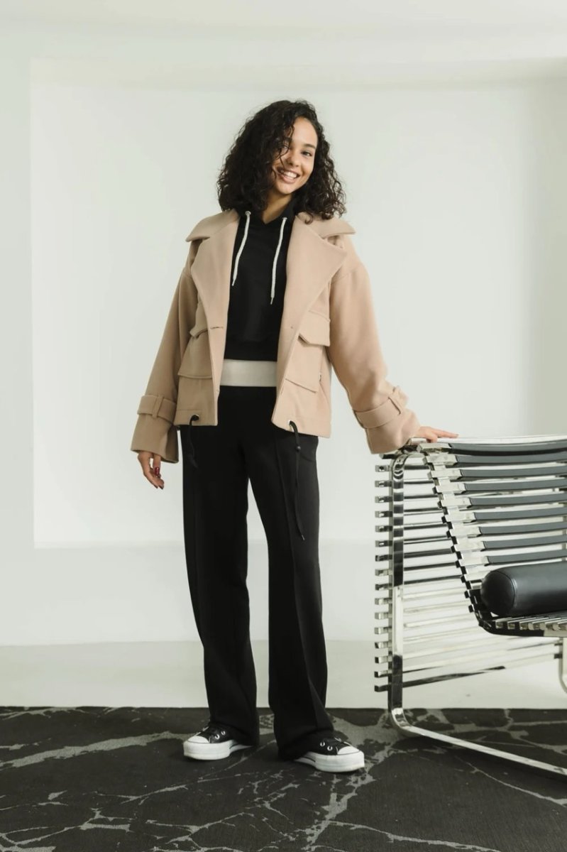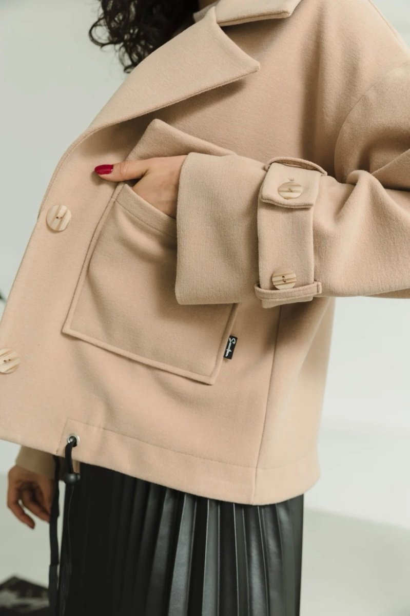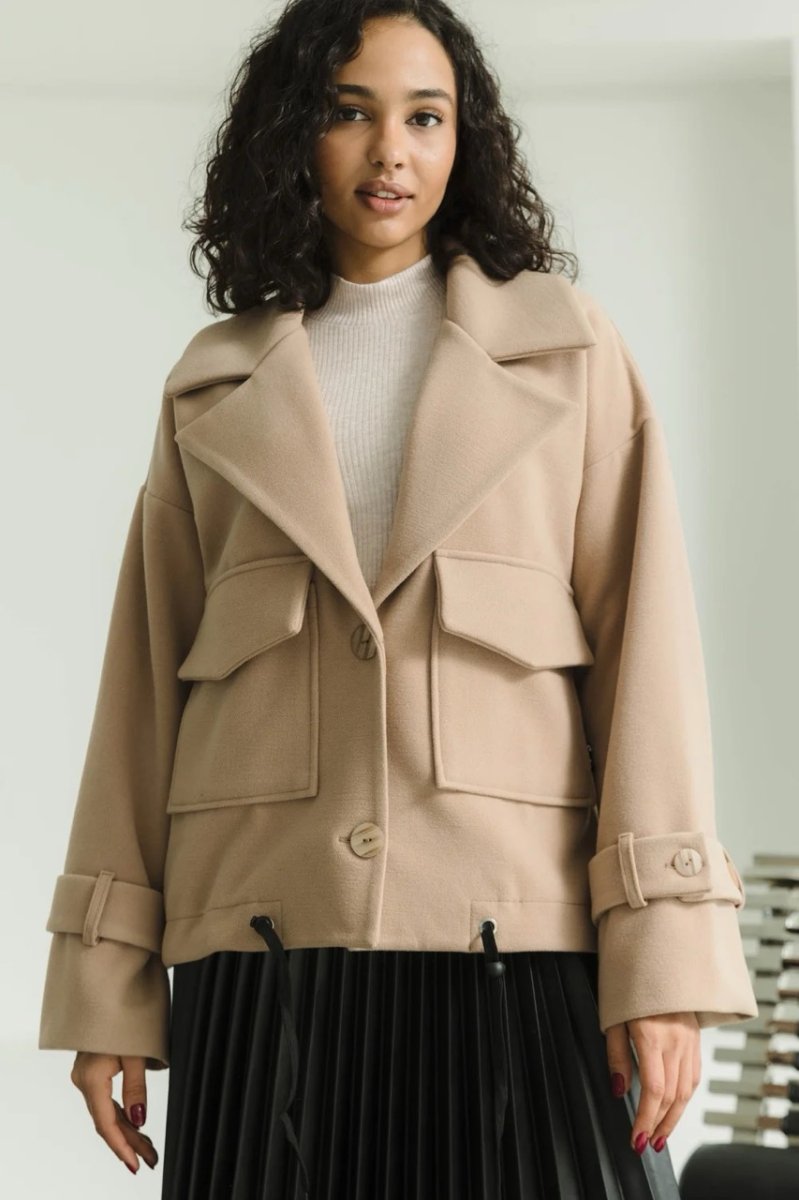 Декоративные элементы: накладные карманы, хлястики на рукавах