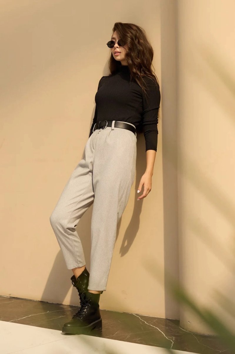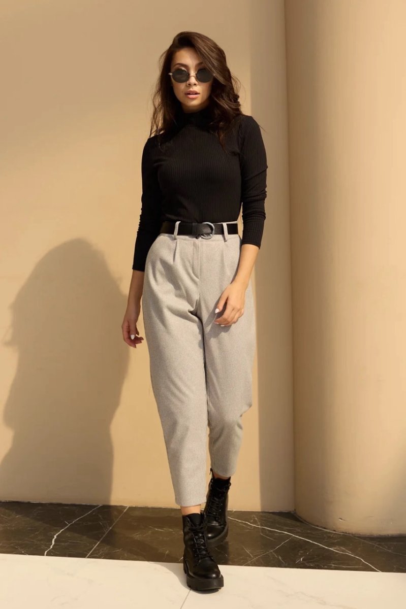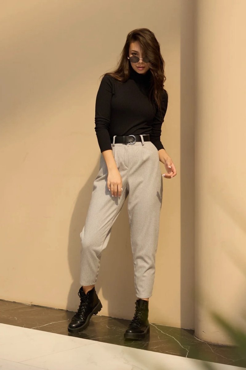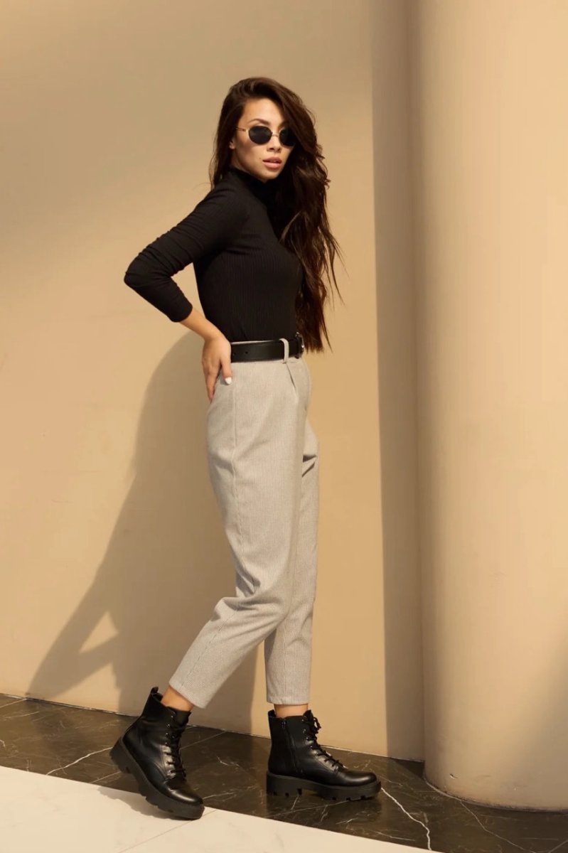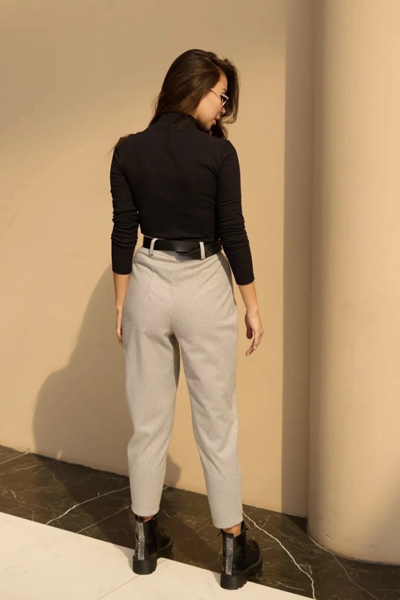 Укороченные брюки давно стали базовой вещью. Приятный материал к телу – итальянский кашемир. К низу идут зауженные. Застежка в виде потайной молнии и пуговицы. Есть карманы с отрезным бочком.