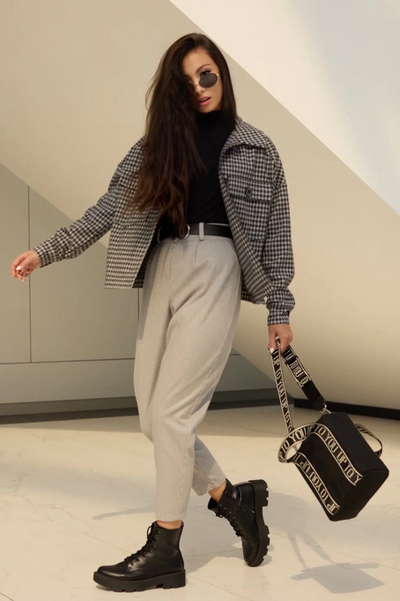 Фасон: зауженный к низу, широкие брюки, с карманами.