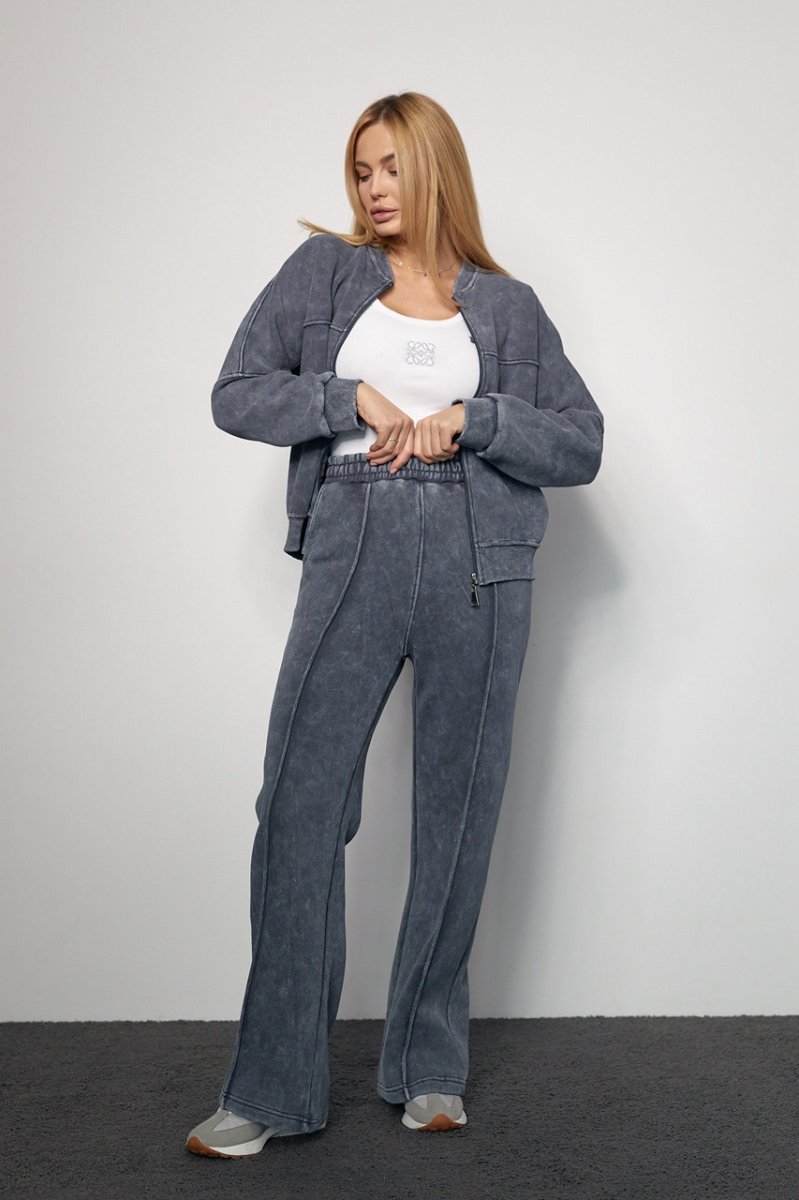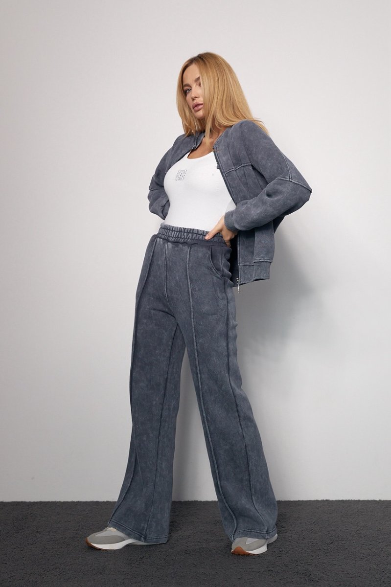 Трикотажный женский костюм с начесом в технике тай-дай не только стильно выглядит, подчеркивая красоту женской фигуры, но и порадует девушек своим комфортом.
