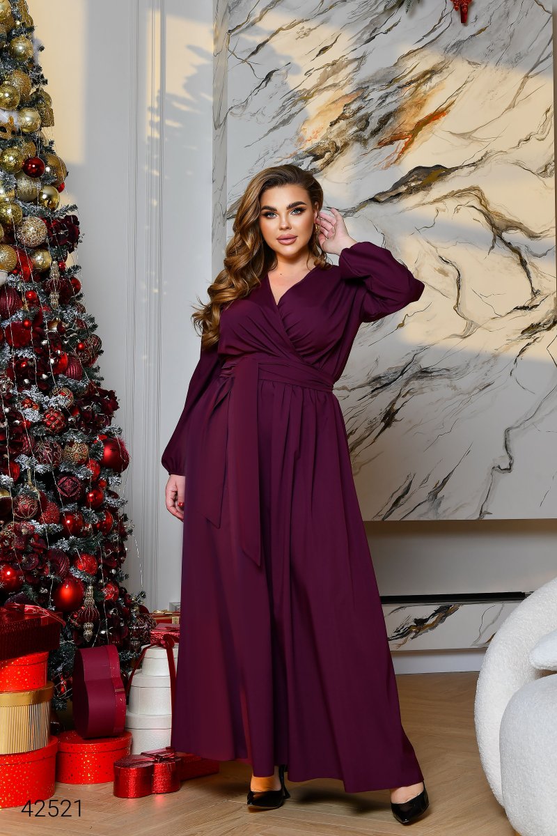 Вечернее платье плюс сайз на запах 42521 бордовый