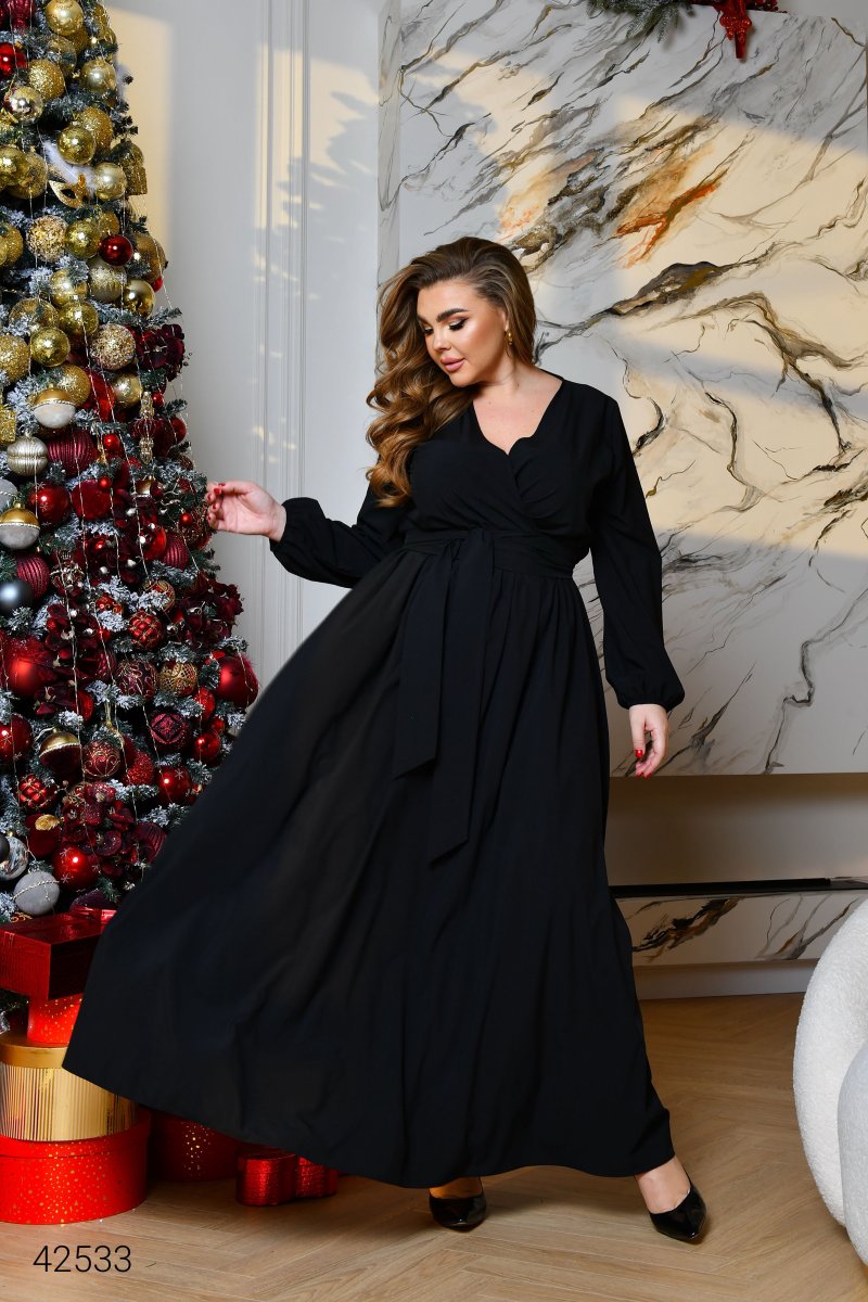 Вечернее платье батал на запах 42533 черный