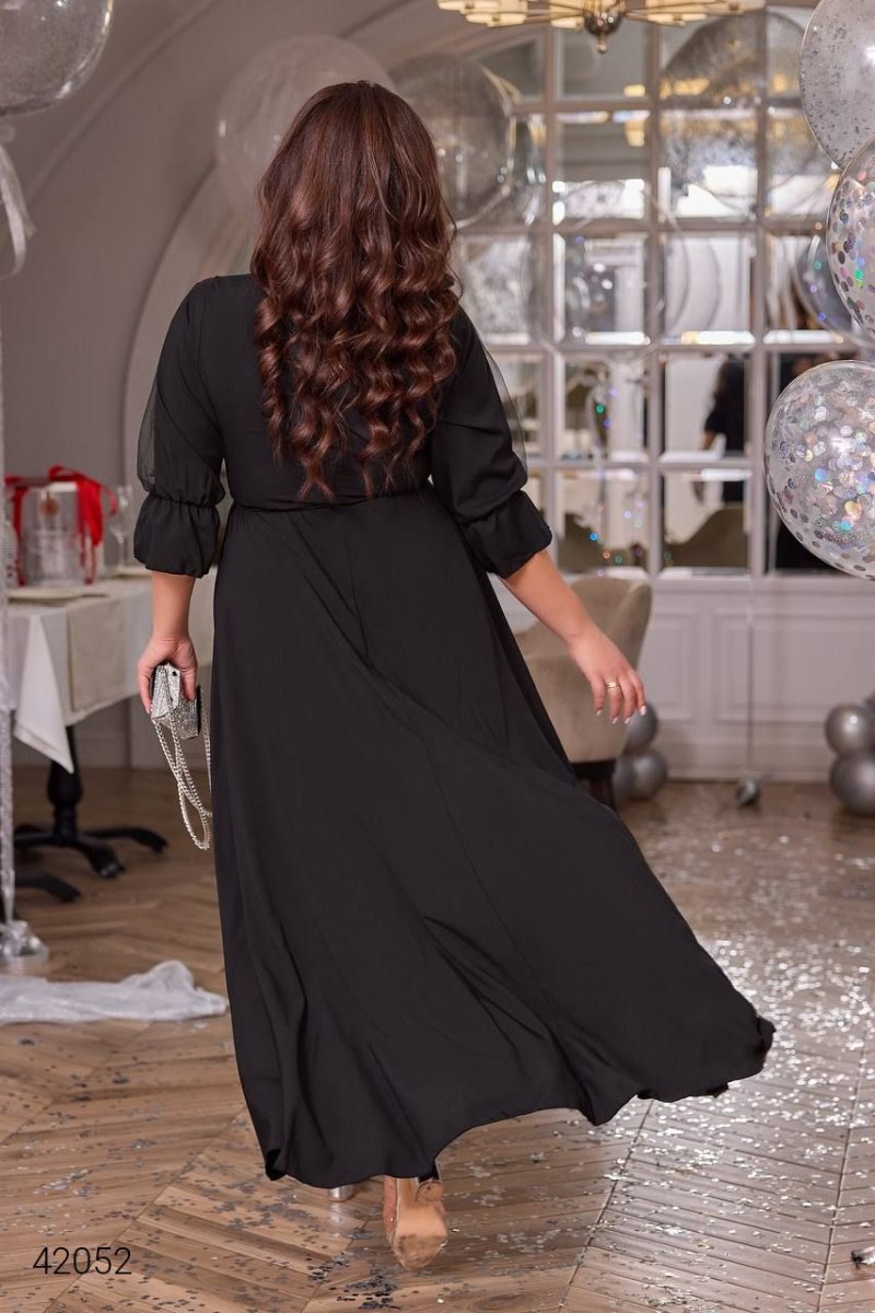 Материал – софт-шелк, перед и рукава – кружево, вышивка на сетке с легким блеском.