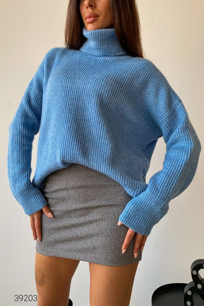 Свитер в стиле оверсайз из качественной вязки, производства Турции. Высокий ворот с отворотом, заниженная линия плеч. Размер универсальный, подходит на 42-48. Состав ткани: 70% – акрил, 20% – полиэстер, 10% – элит.