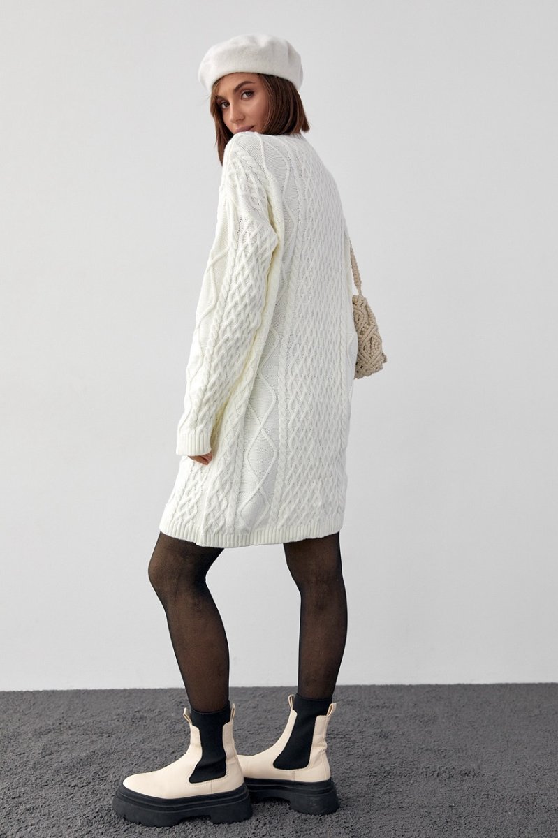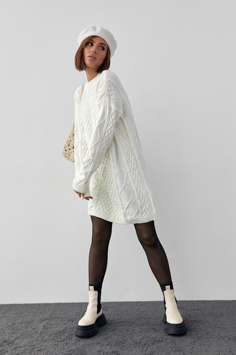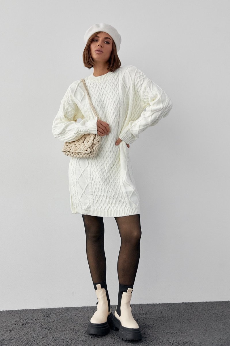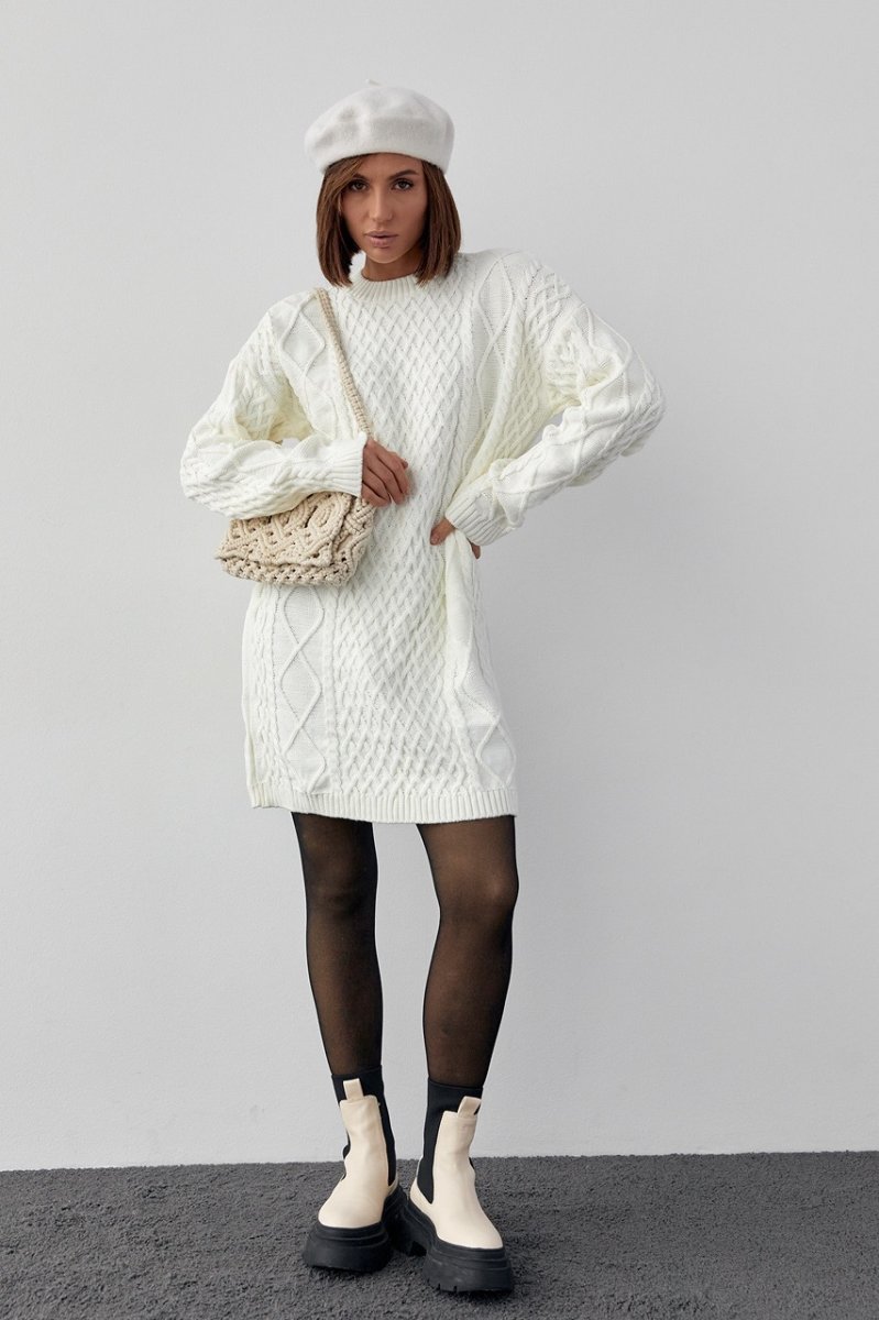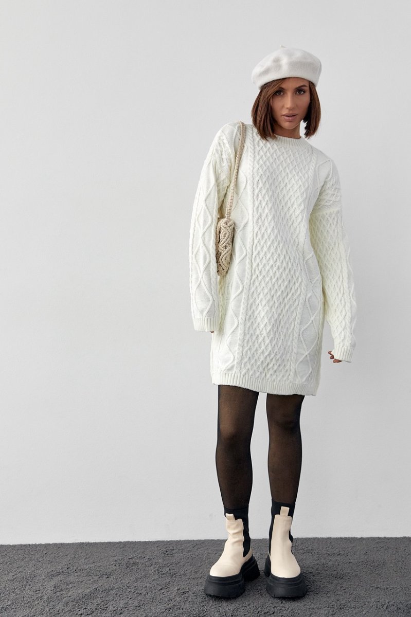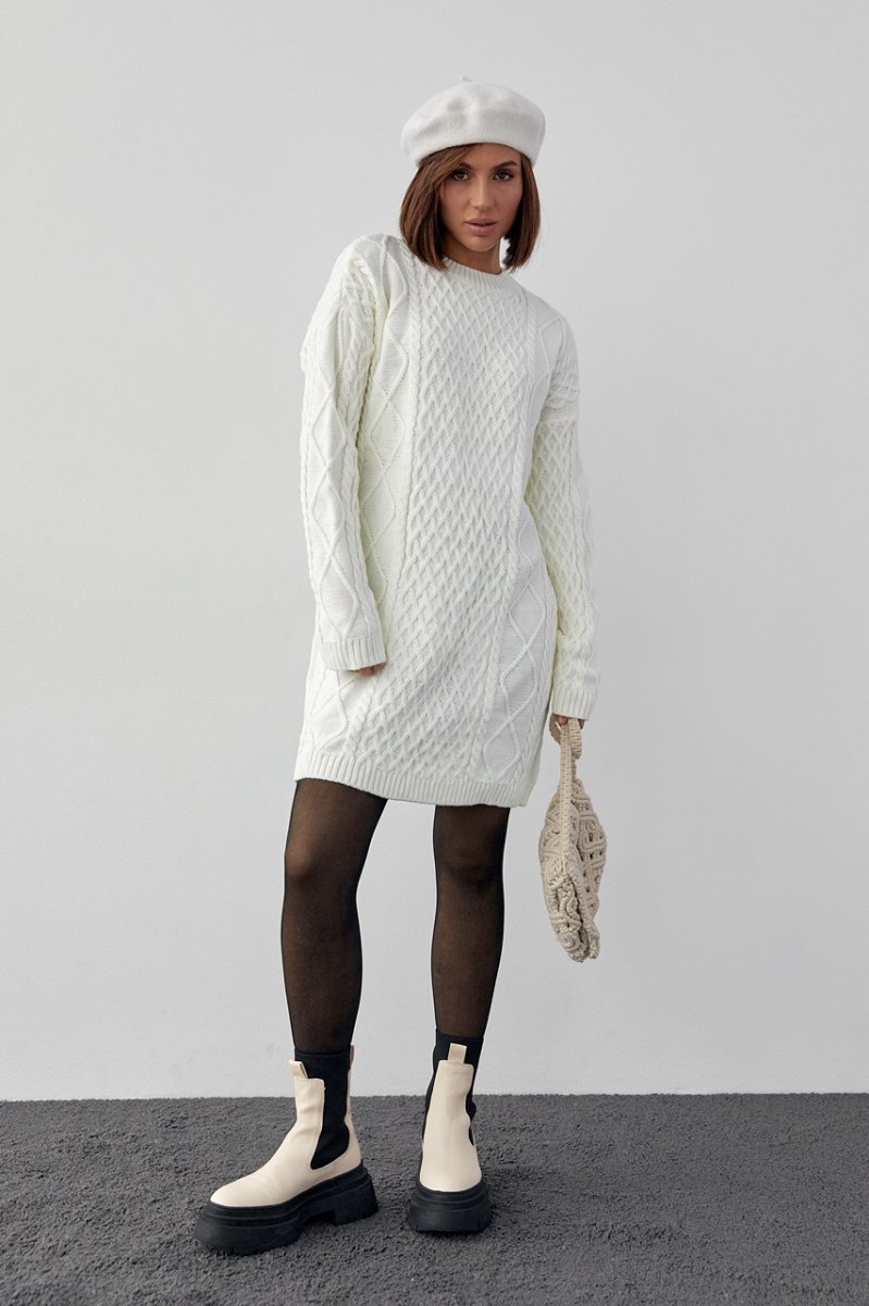 Вязаное платье-туника 10528 молочный