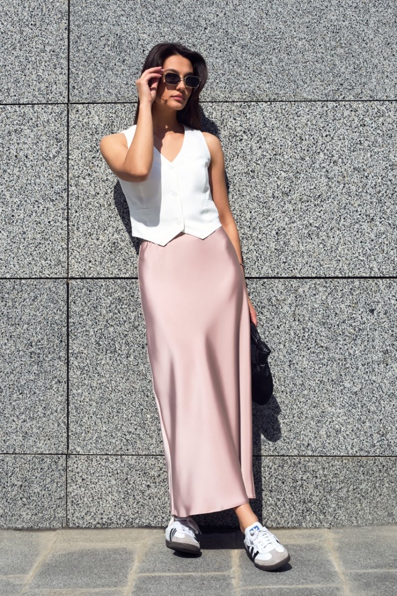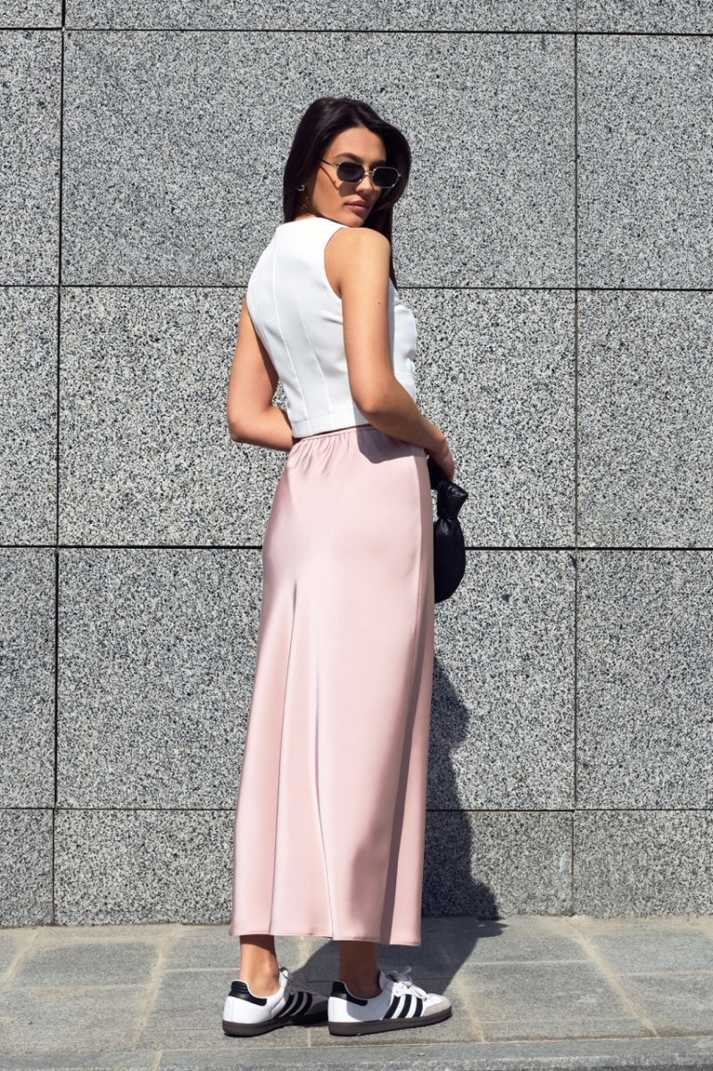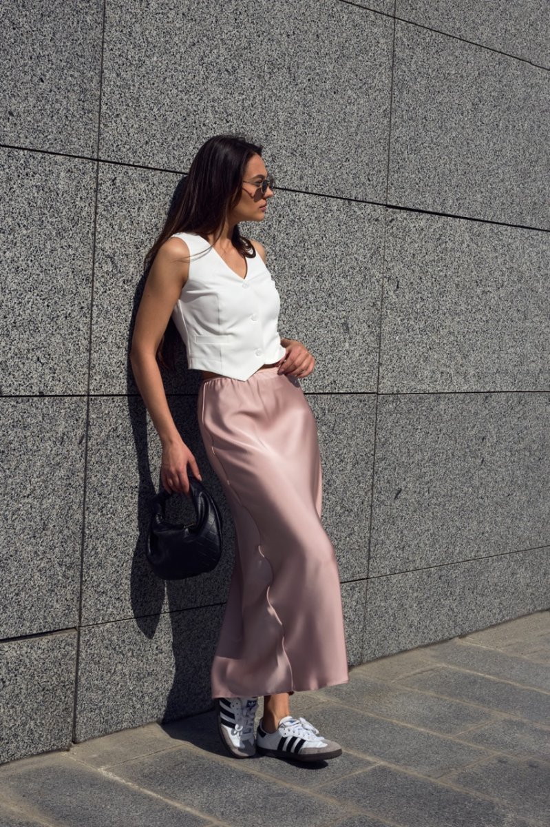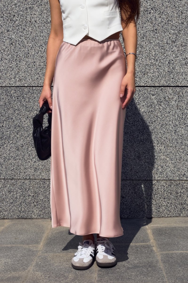 Невероятная атласная юбка – символ элегантности и стиля. Изготовленная из атласа она нежно обнимает фигуру и придает комфорт. Средняя посадка, пояс на ркюэзинке создают дополнительный комфорт.