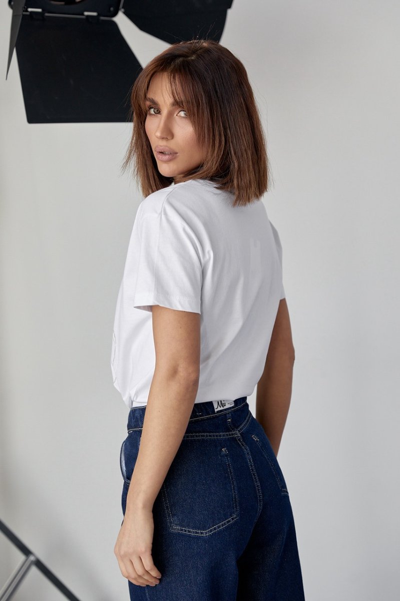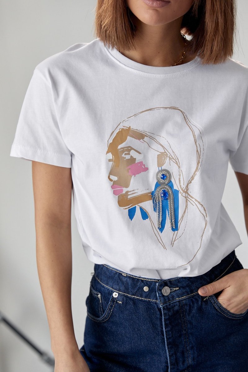 Женская футболка украшена принтом девушки с сережкой - 4509 белый