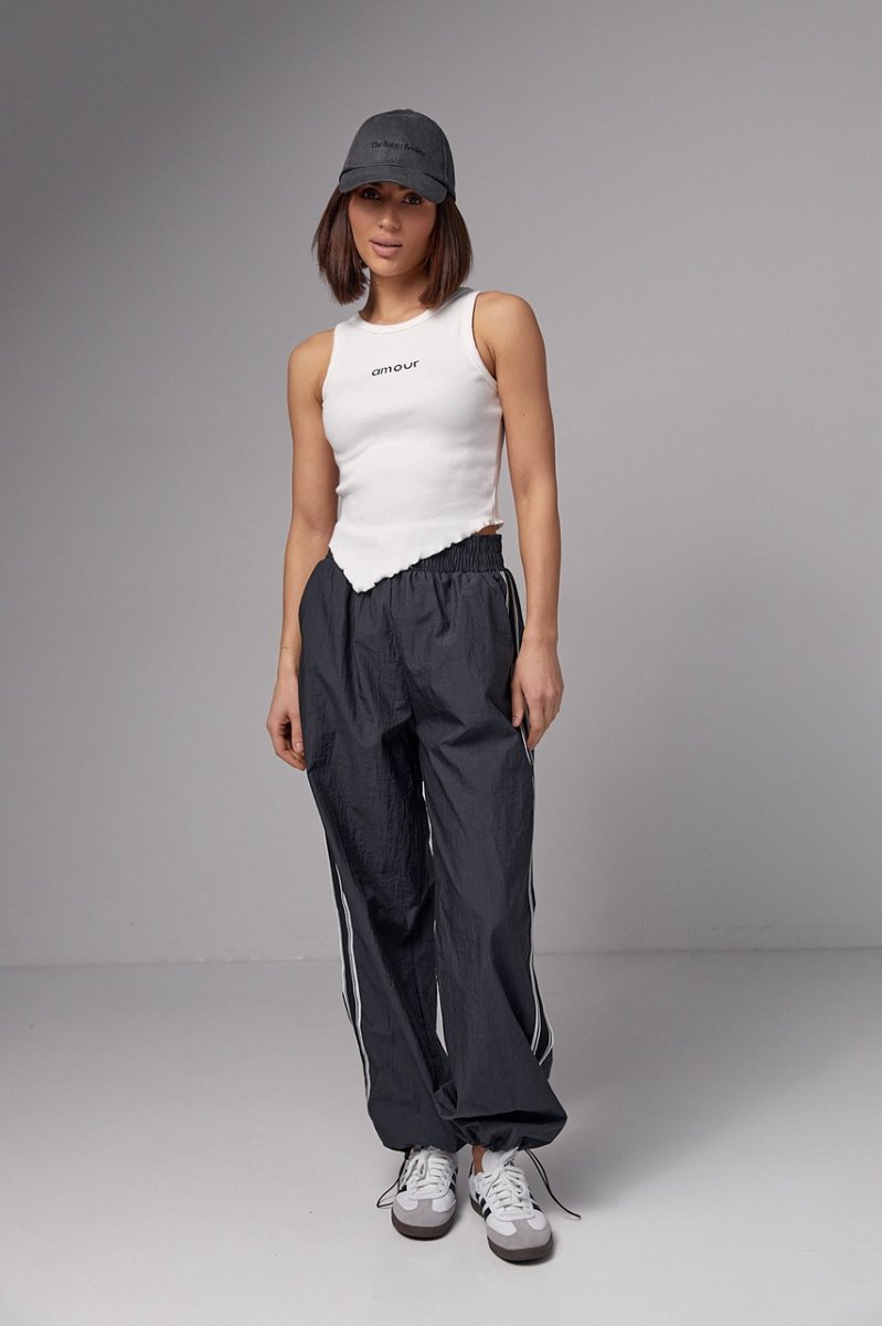 Женская майка в рубчик с асимметрией и надписью Amour - 29621 серая
