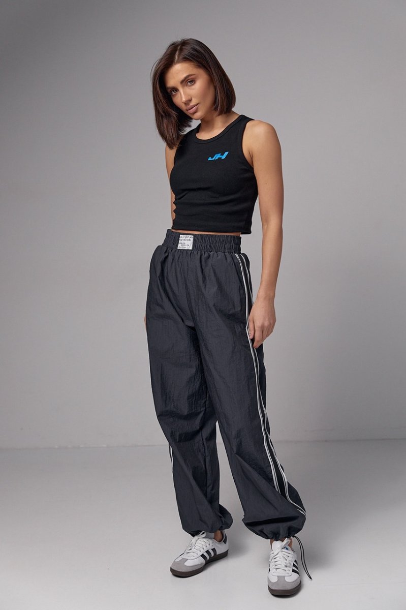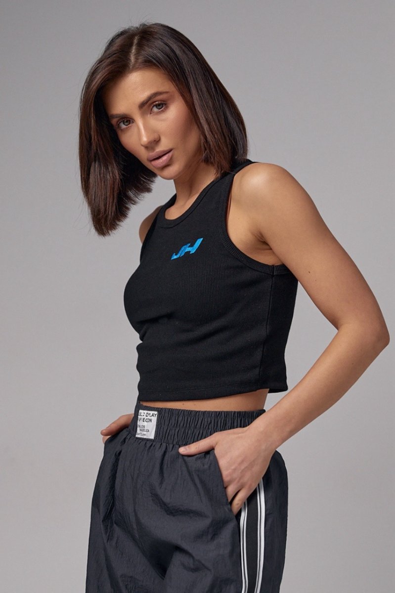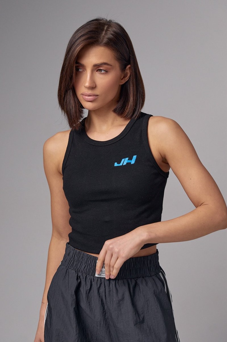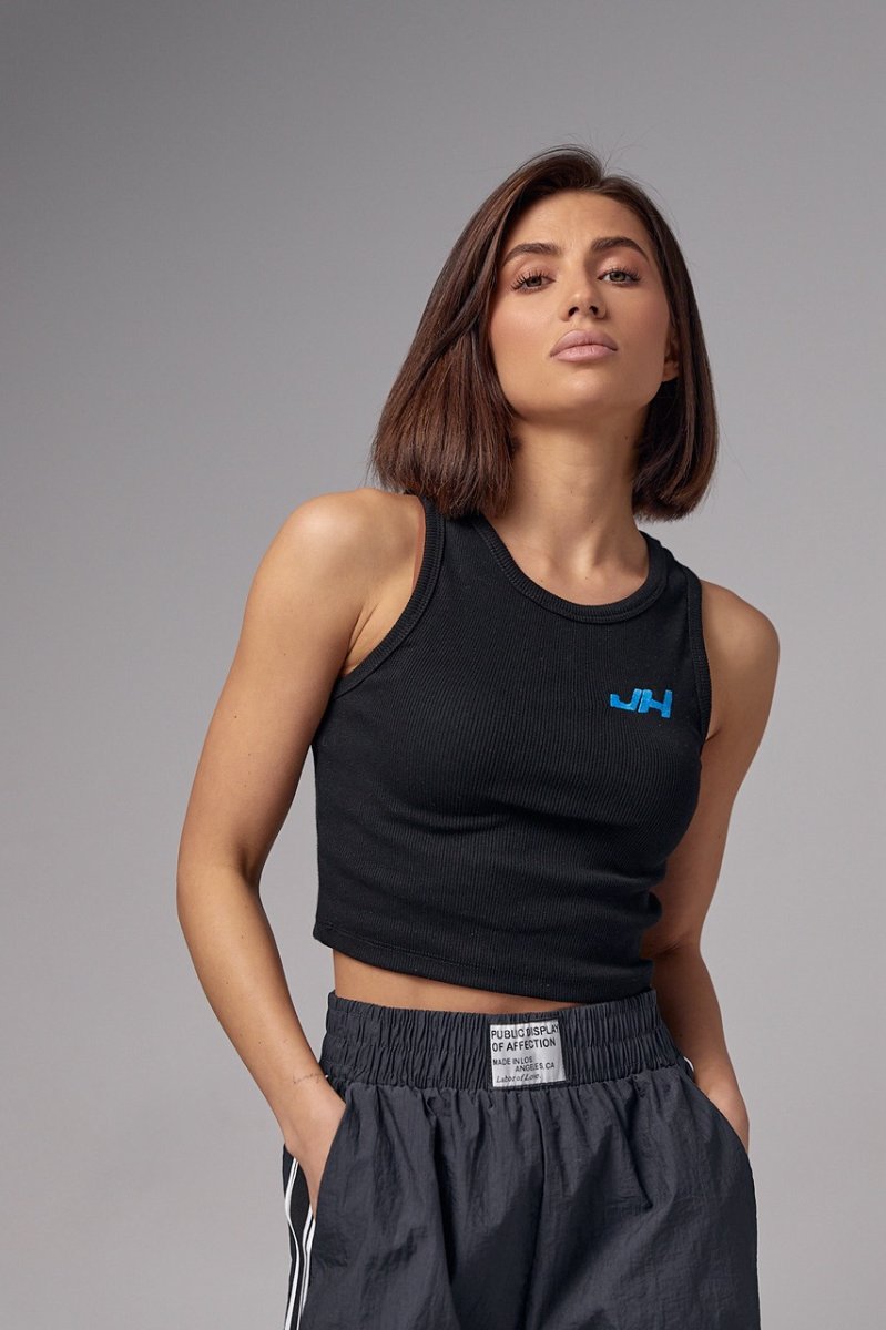 Женская майка в рубчик с вышивкой JH - 2961 черная