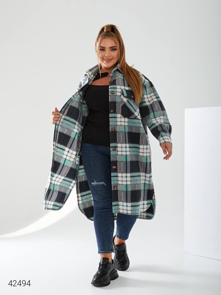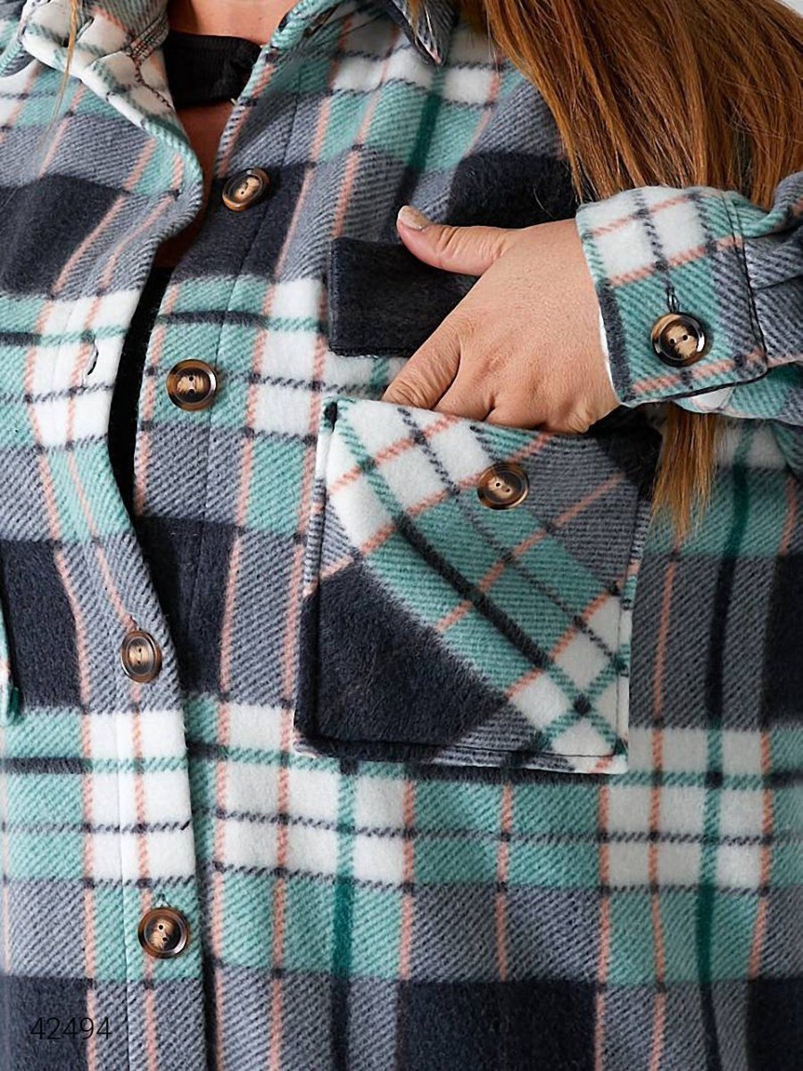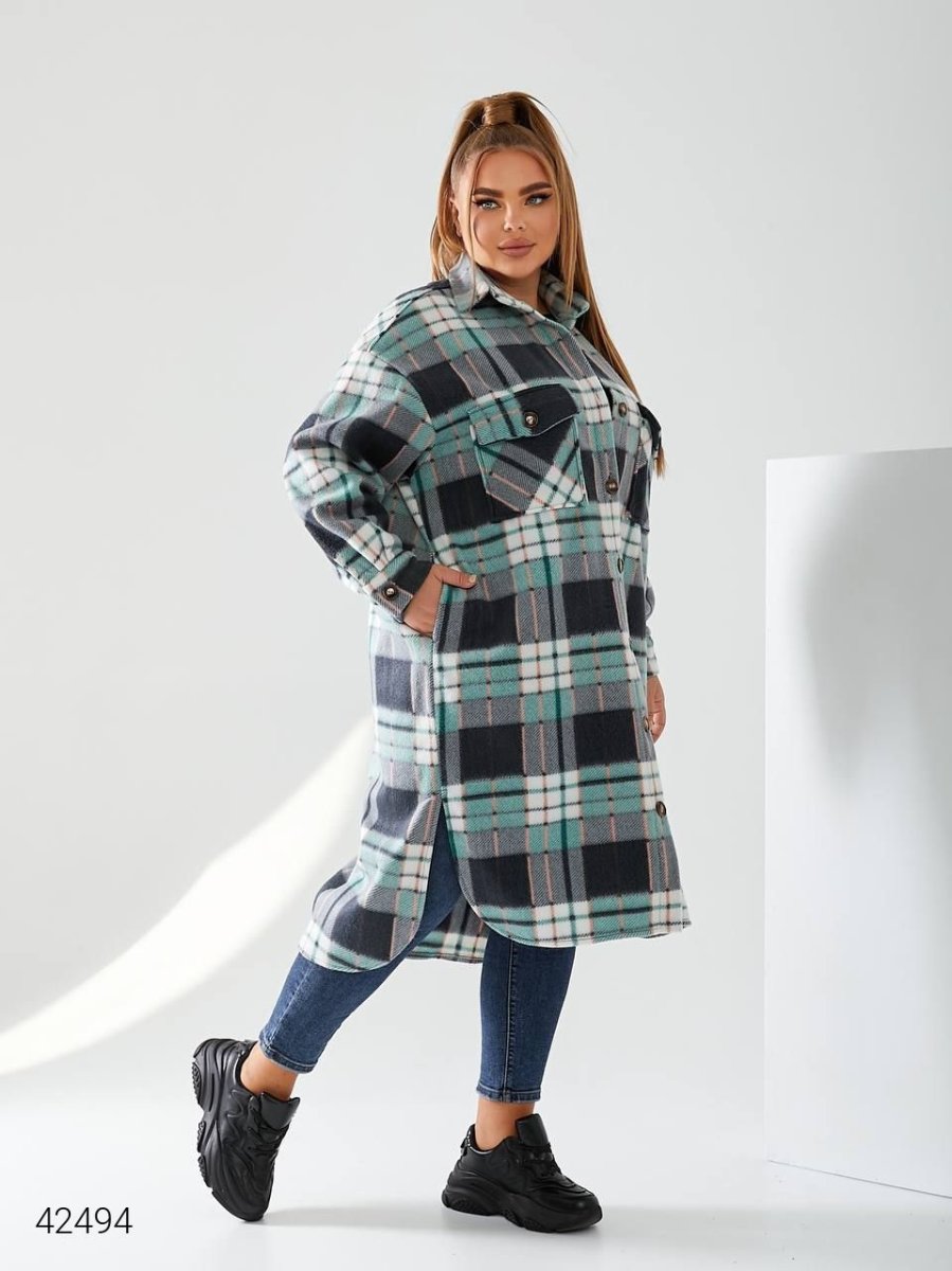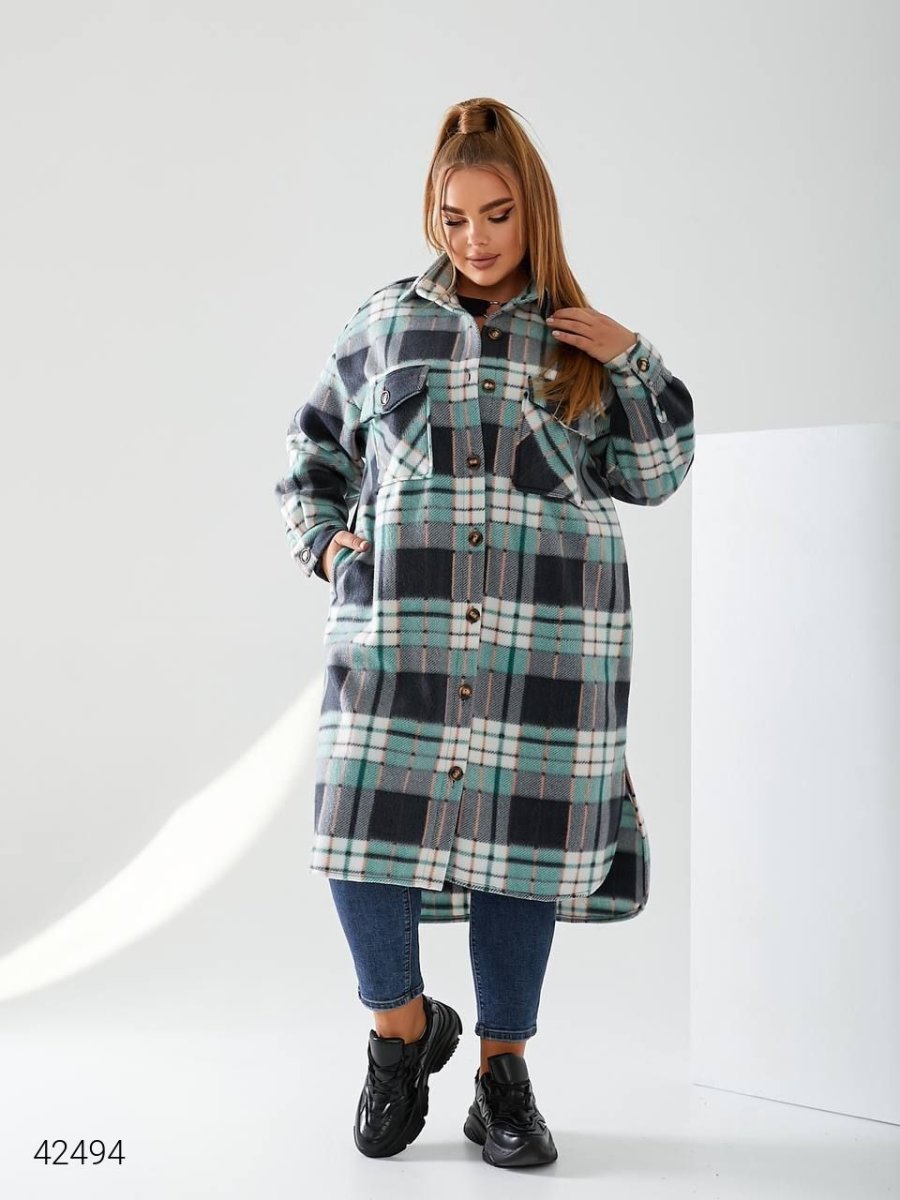 Женская рубашка удлиненная. Рубашка в стиле оверсайз, удлиненного кроя с закругленными разрезами по бокам. Рубашка застегивается на пуговицы. На груди объемные и функциональные карманы, по бокам врезные карманы. Рукав на манжете.