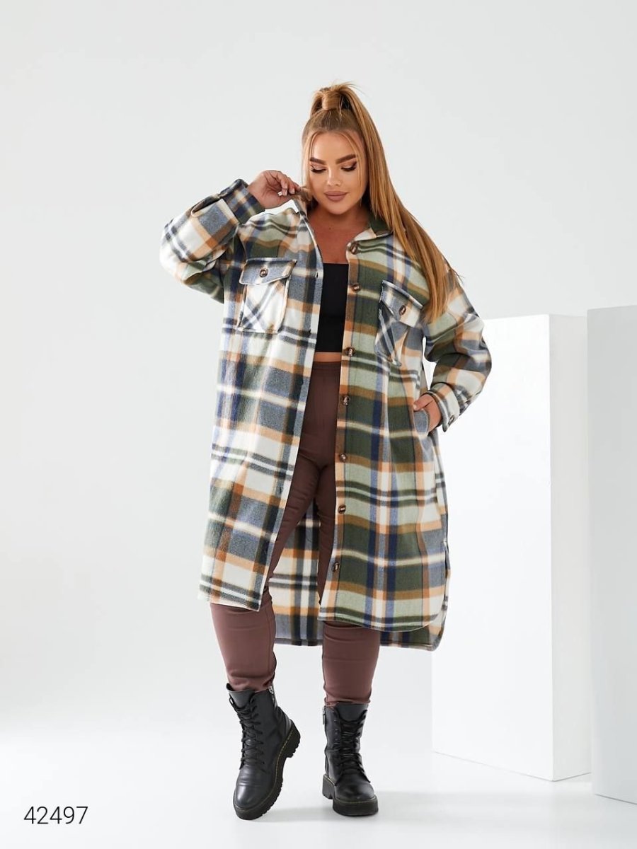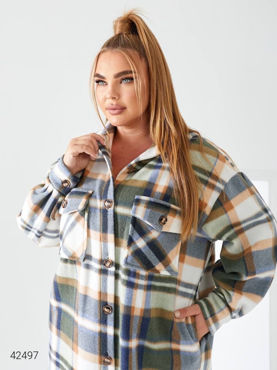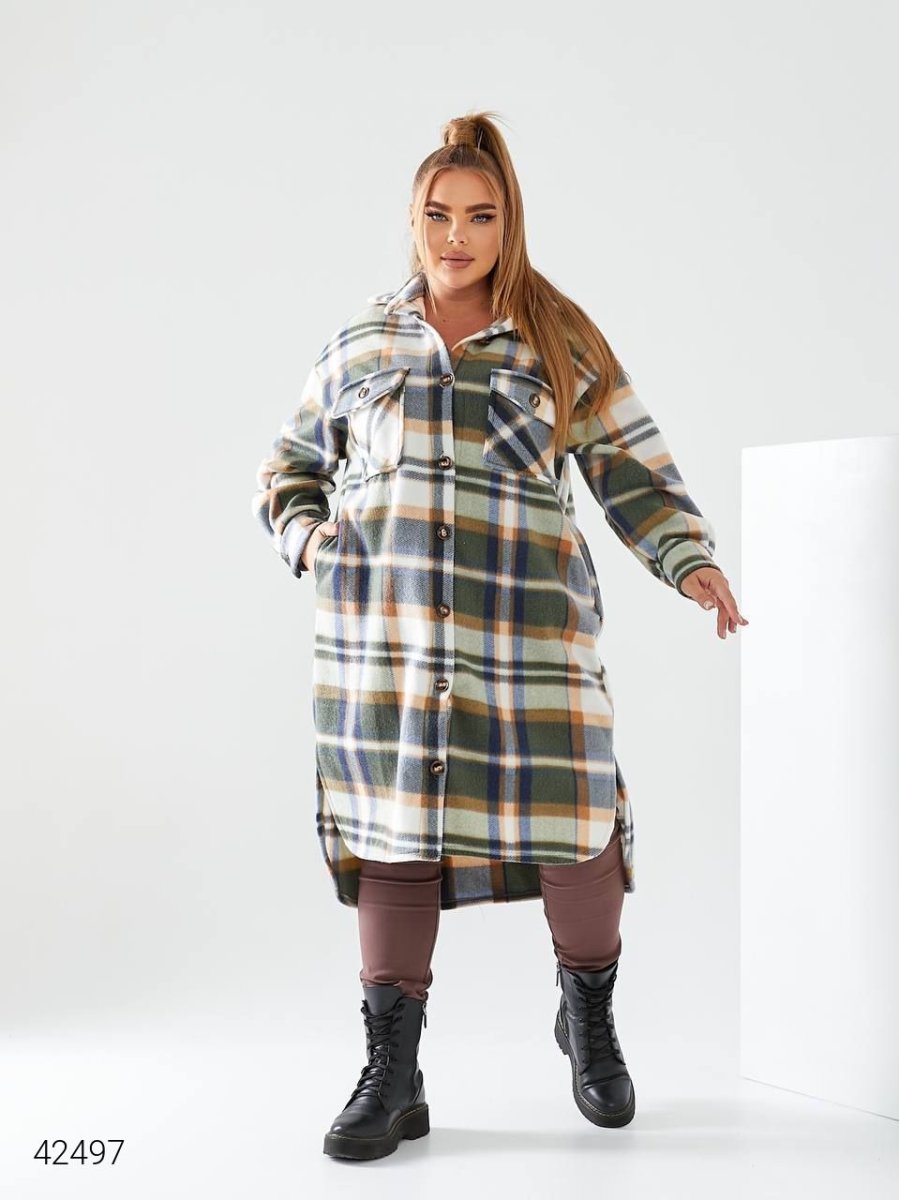 Женская рубашка удлиненная. Рубашка в стиле оверсайз, удлиненного кроя с закругленными разрезами по бокам. Рубашка застегивается на пуговицы. На груди объемные и функциональные карманы, по бокам врезные карманы. Рукав на манжете.