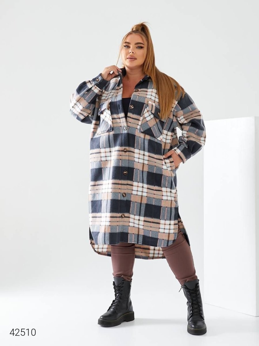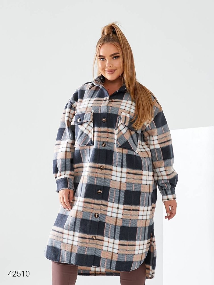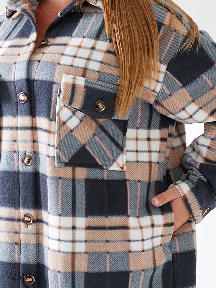 Женская рубашка удлиненная. Рубашка в стиле оверсайз, удлиненного кроя с закругленными разрезами по бокам. Рубашка застегивается на пуговицы. На груди объемные и функциональные карманы, по бокам врезные карманы. Рукав на манжете.
