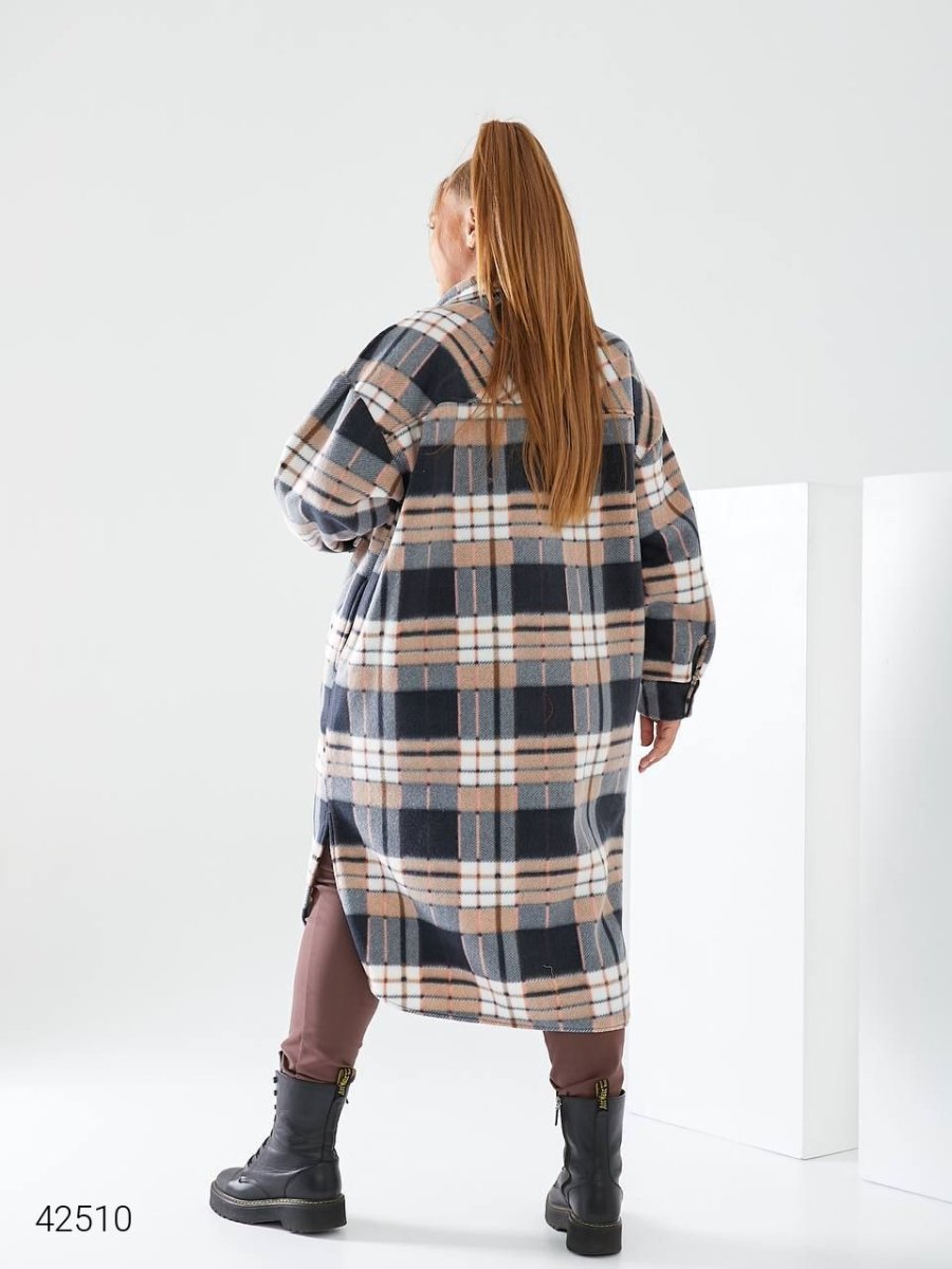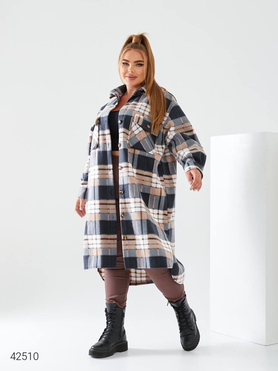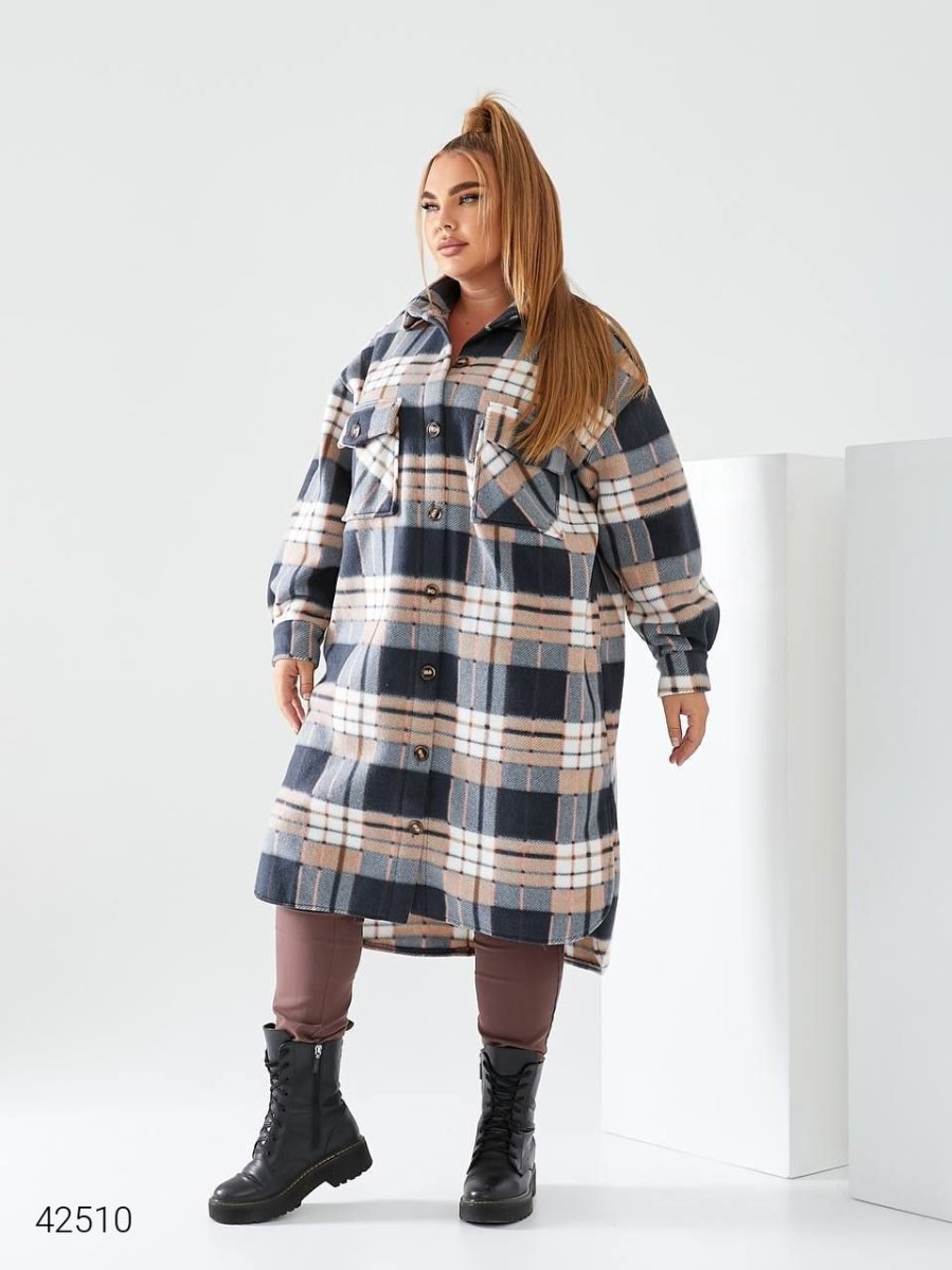 Женская рубашка удлиненная. Рубашка в стиле оверсайз, удлиненного кроя с закругленными разрезами по бокам. Рубашка застегивается на пуговицы. На груди объемные и функциональные карманы, по бокам врезные карманы. Рукав на манжете.