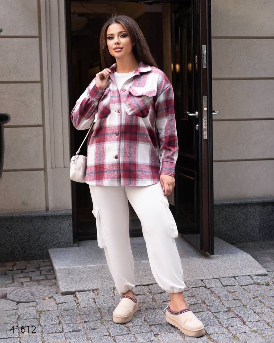 Женская теплая рубашкка в клетку. Ткань: лёгкий кашемир.