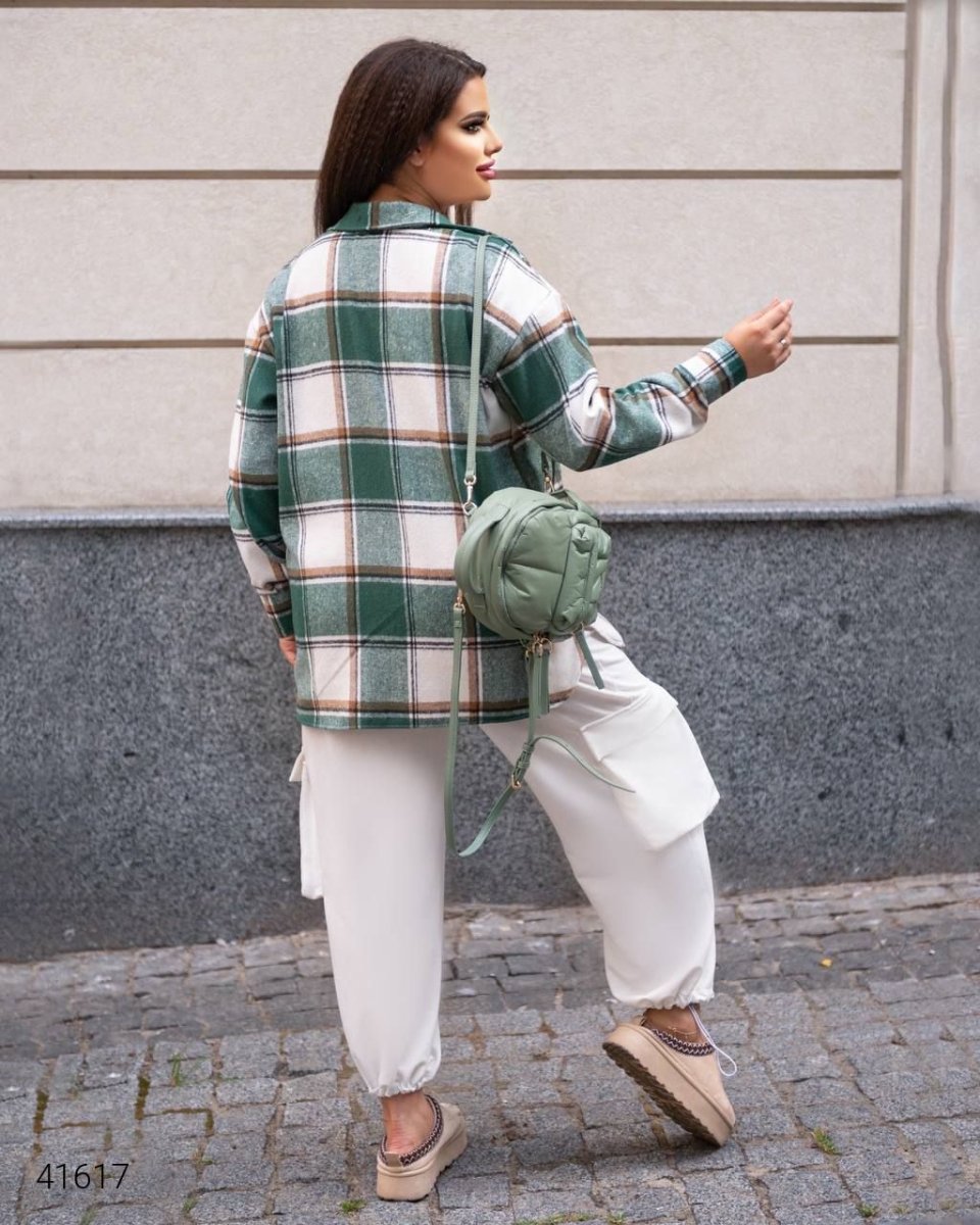 Женская теплая рубашка в клетку. Ткань: лёгкий кашемир.