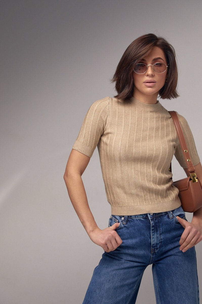 Эта стильная женская футболка станет основой для ваших повседневных и деловых образов, хорошо сочетаясь и с классическими черными брюками или цветными юбками, и с молодежными джинсами всевозможных расцветок. При этом она добавит наряду трендовых акцентов благодаря актуальной вязаной текстуре.