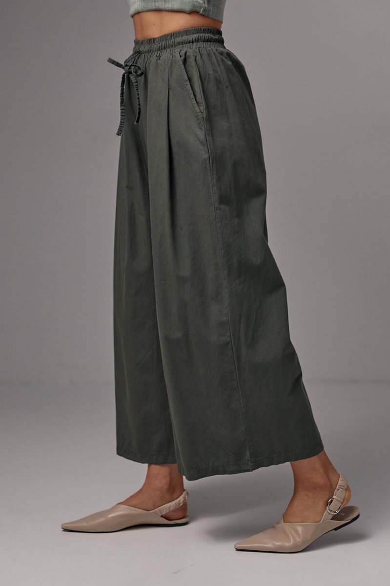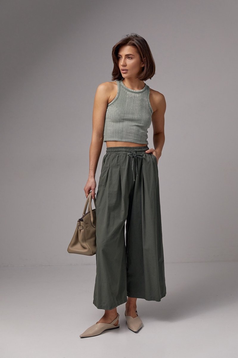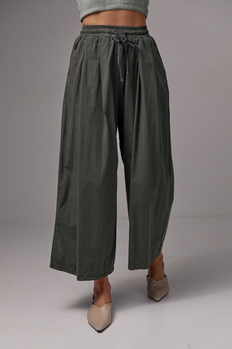 Женские брюки-кюлоты на резинке - 21510 хаки