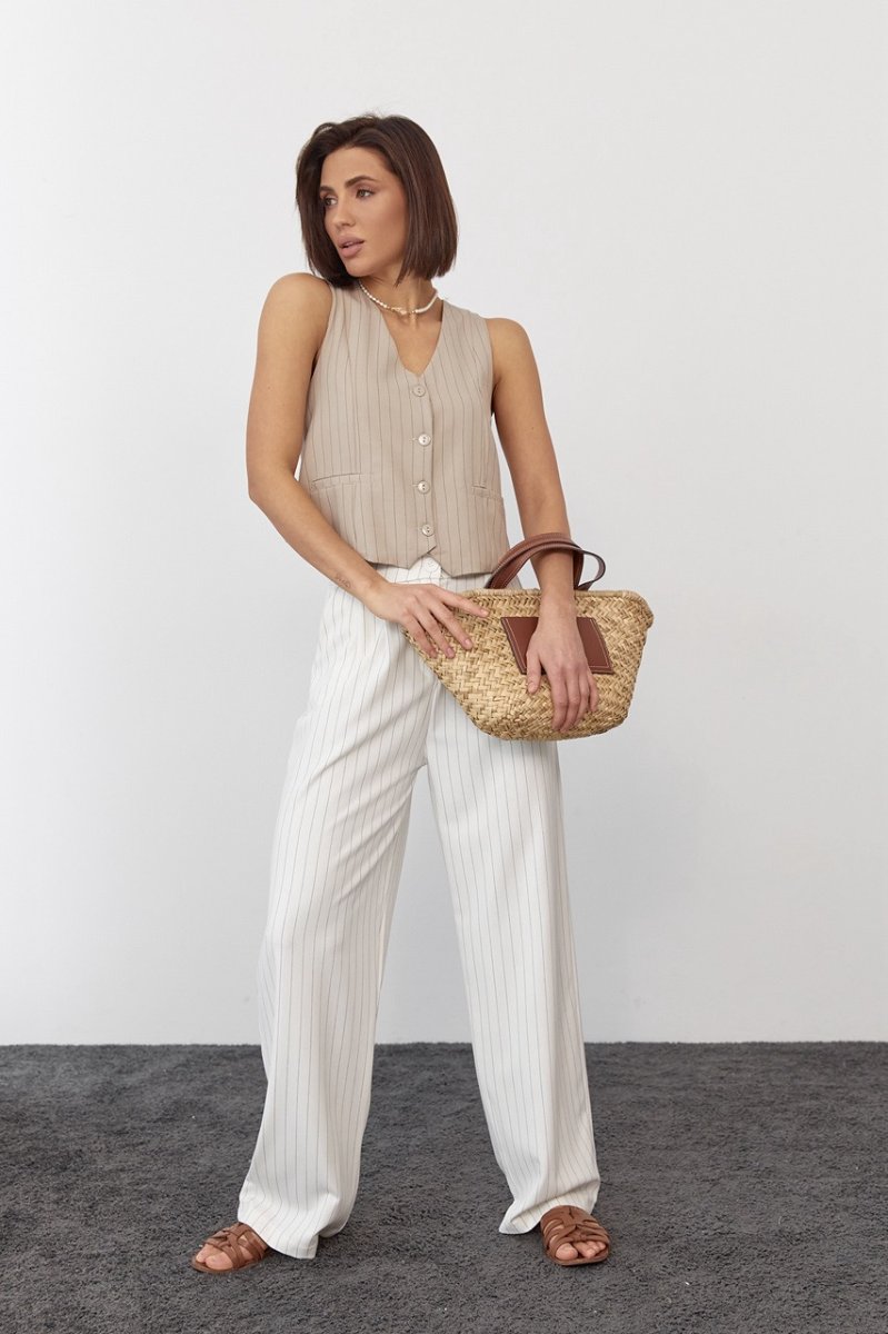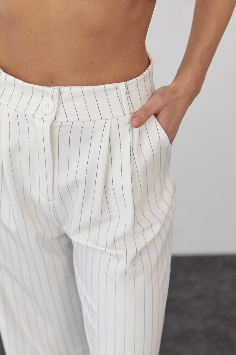 Стильные женские брюки в тонкую вертикальную полоску - это универсальная вещь, которая станет базой для самых разнообразных образов, да еще и сделает твои ноги визуально стройнее. Это, однозначно, must have для каждой модницы.