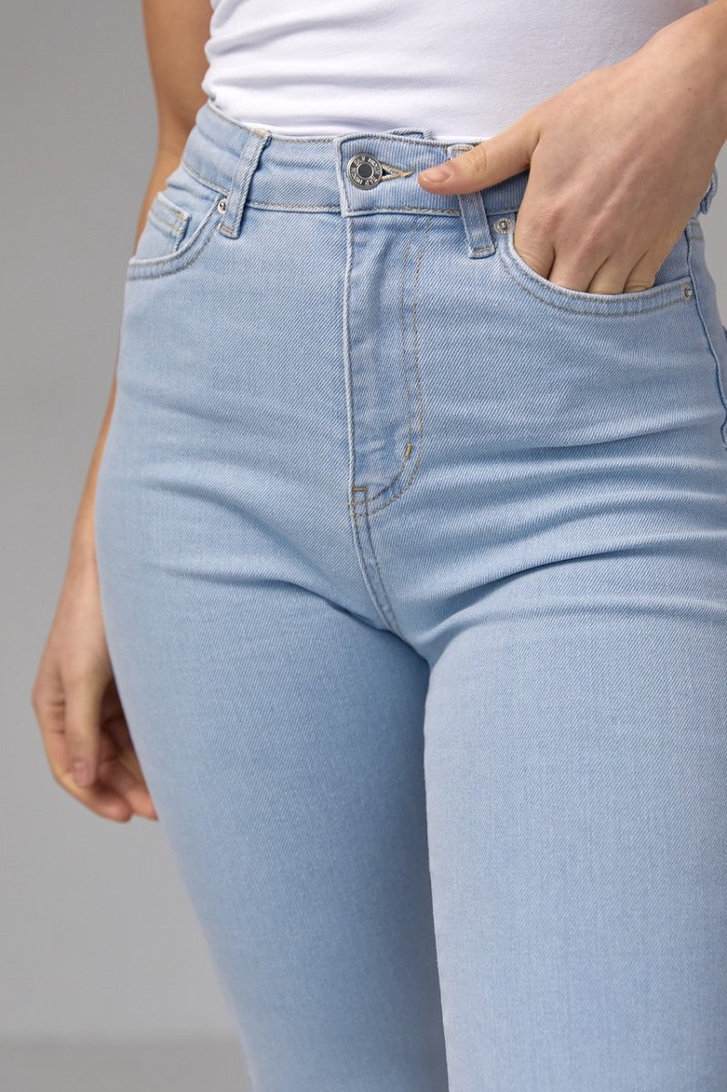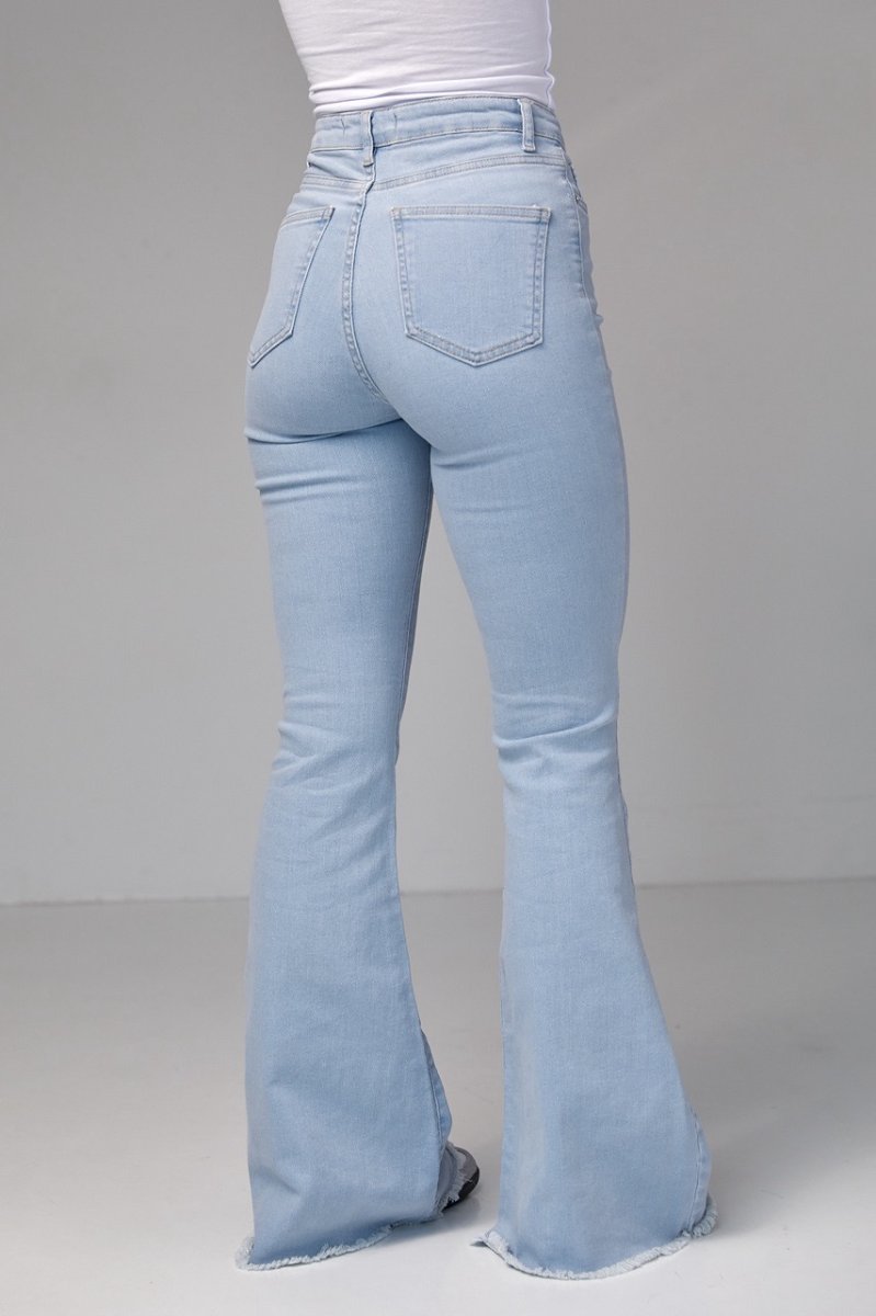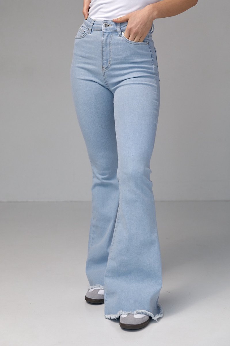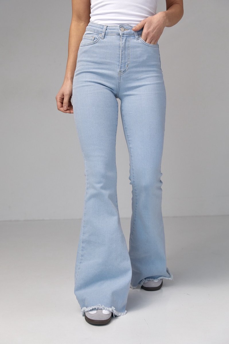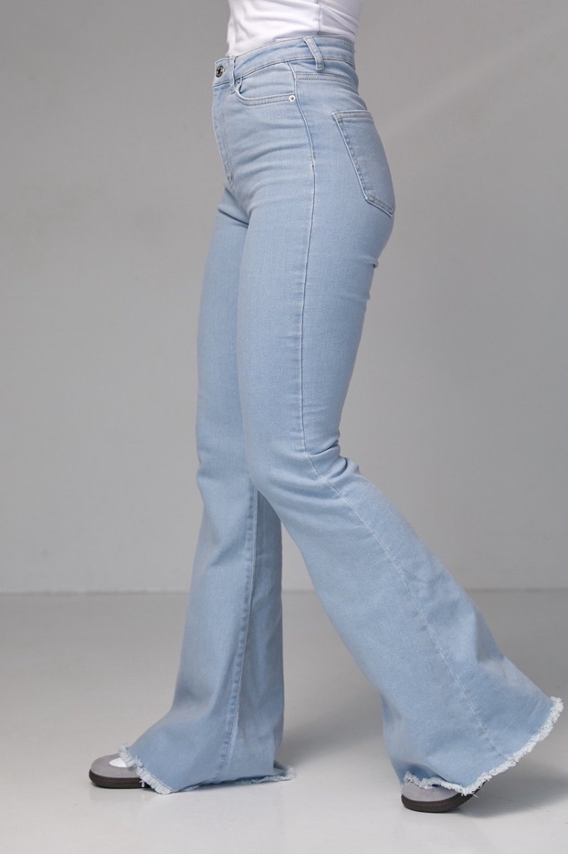 Штаны клеш присутствуют в коллекциях дизайнеров уже не первый сезон. Это современный тренд и элемент ретро-стиля. Наша новая модель клешных джинсов имеет высокую посадку. Нижние края штанин не подшитые.