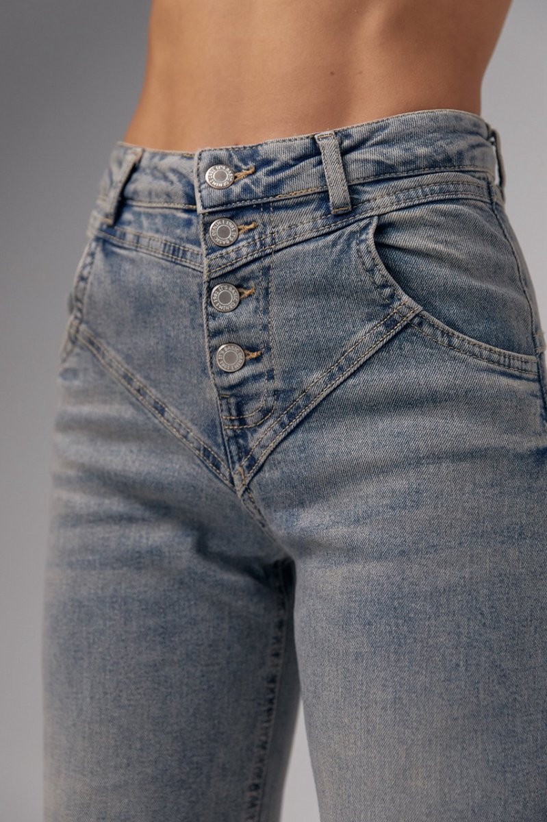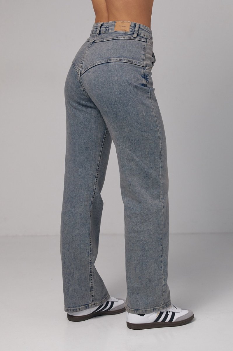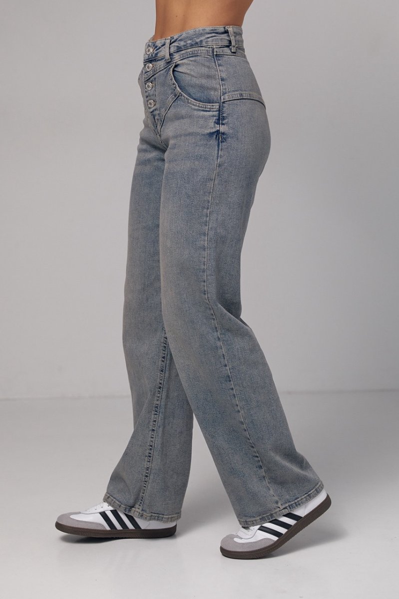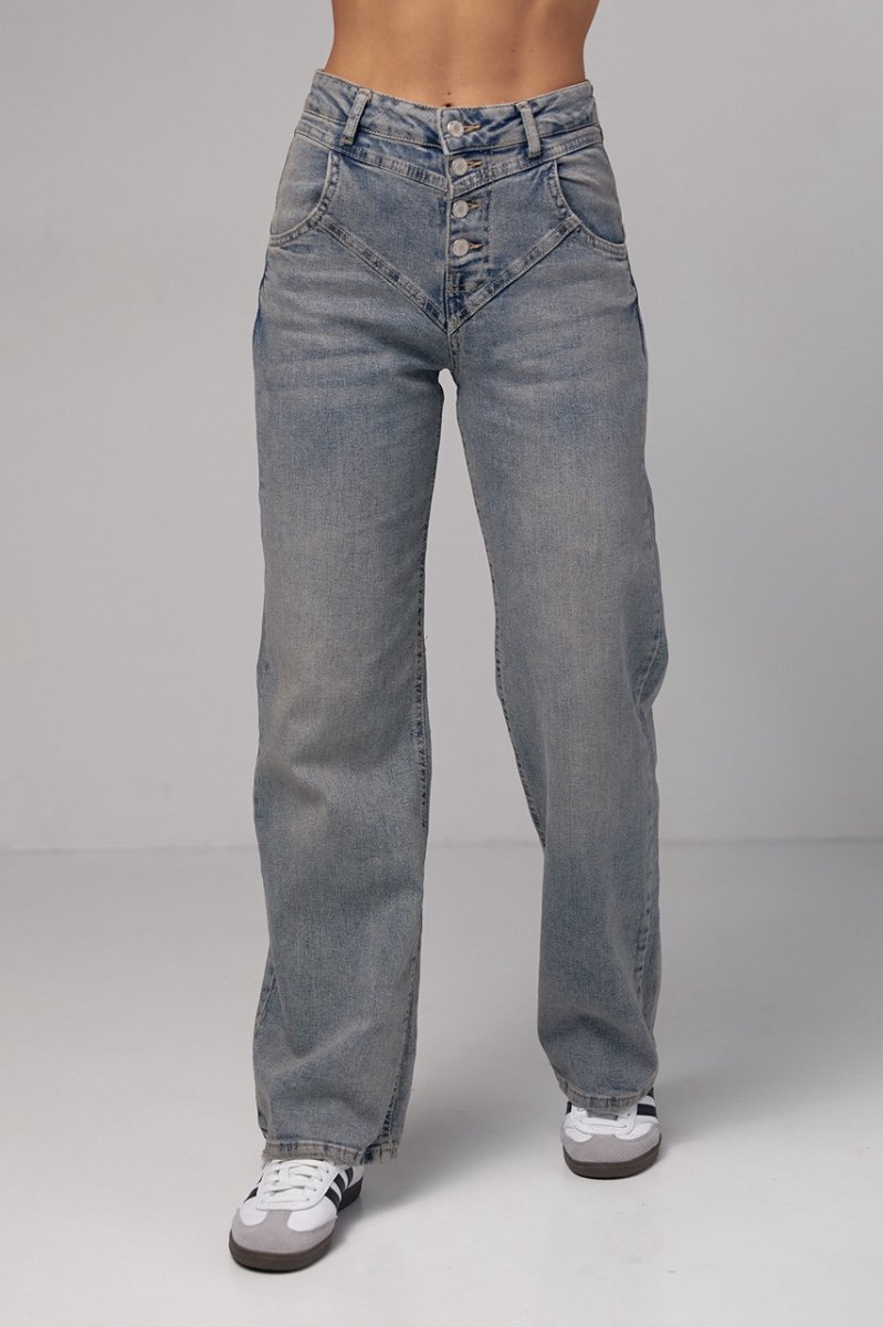Фигурная кокетка добавляет изюминку и оригинальность этим джинсам, делая их более интересными и стильными. Застежка на металлических пуговицах придает джинсам дополнительный шарм и современный вид.
