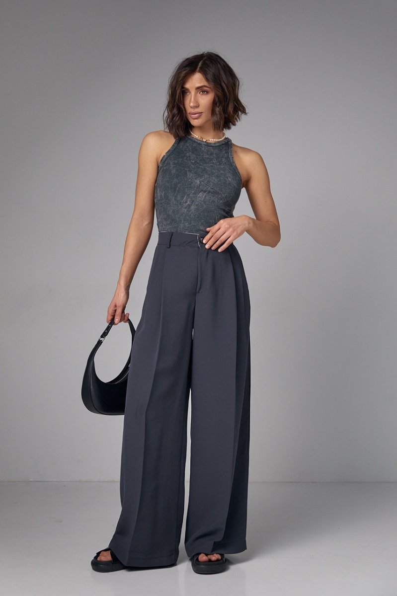 Чтобы создать идеальный силуэт, используйте эти брюки-палаццо в паре с красивой блузой или рубашкой, заправленной за пояс. Так вы подчеркнете талию и визуально вытянете силуэт.