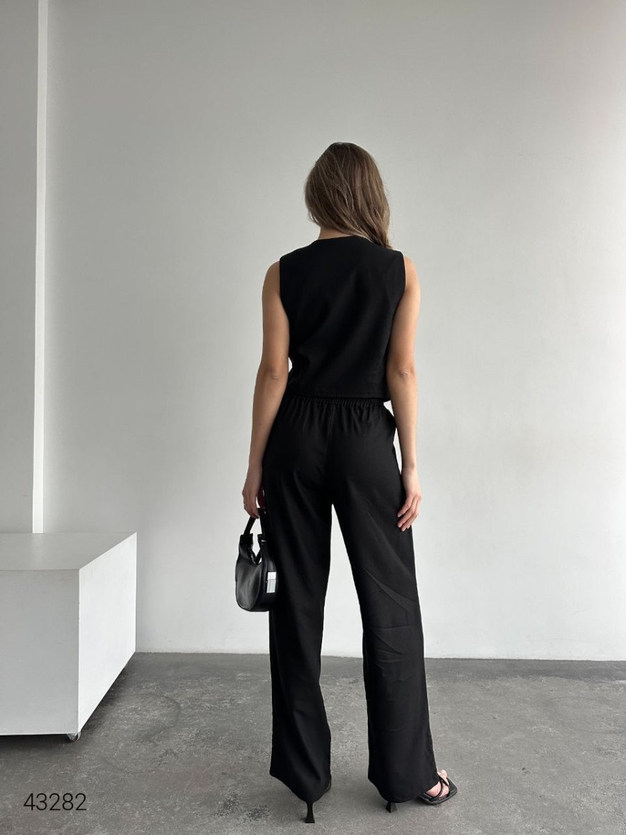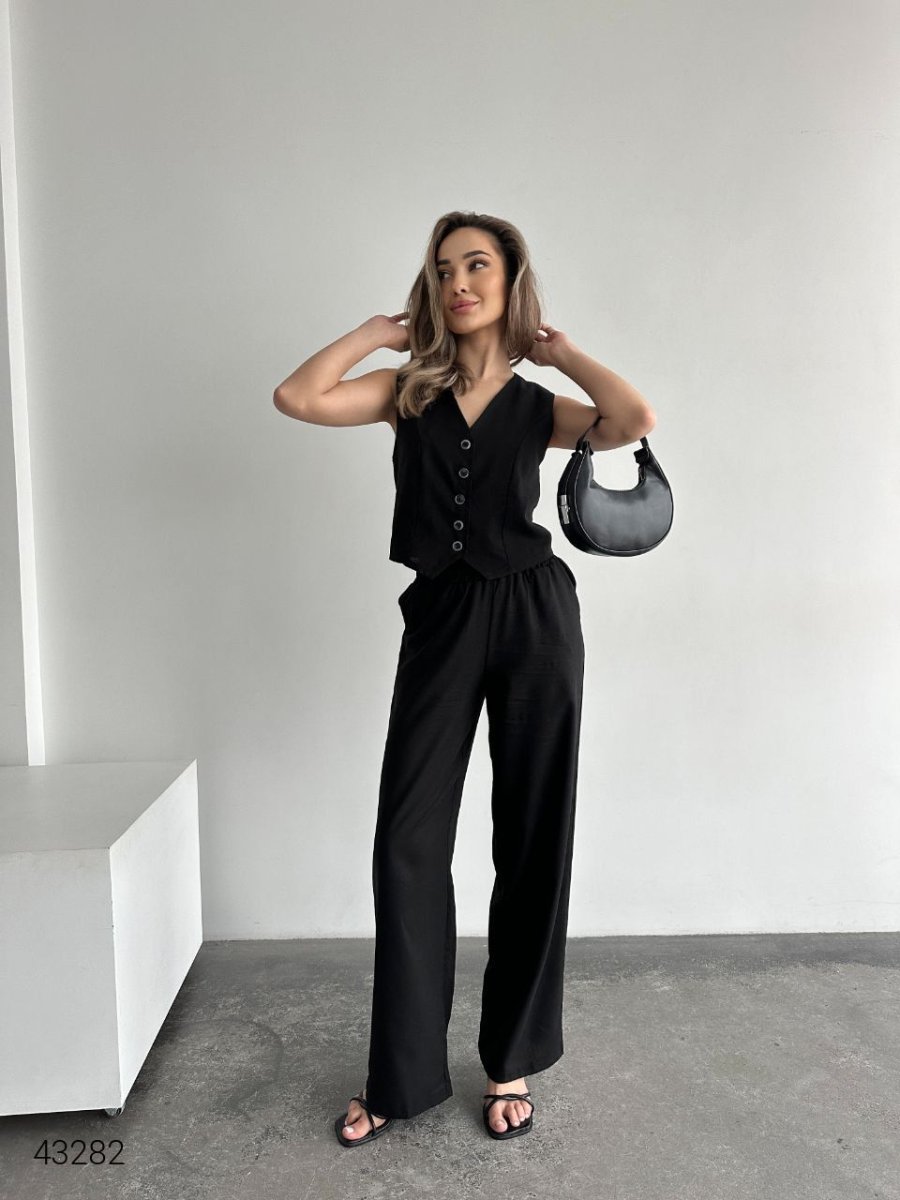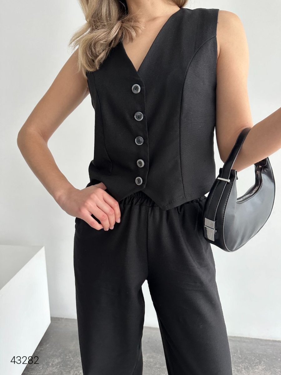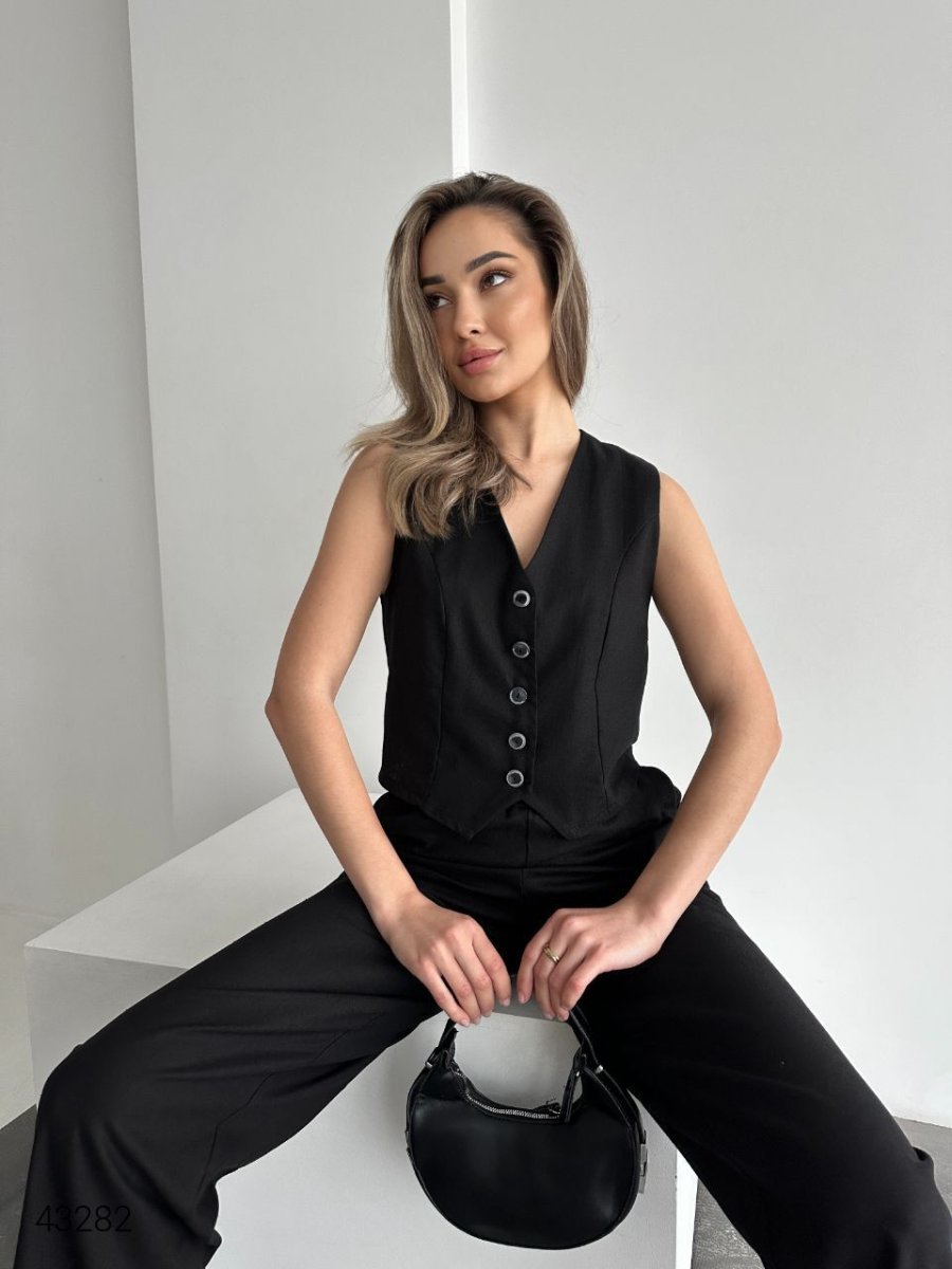 Женский брючный костюм с жилеткой. Тренд сезона. В нём вы создадите стильный и сексуальный образ. А натуральная ткань позволит Вам чувствовать себя комфортно.