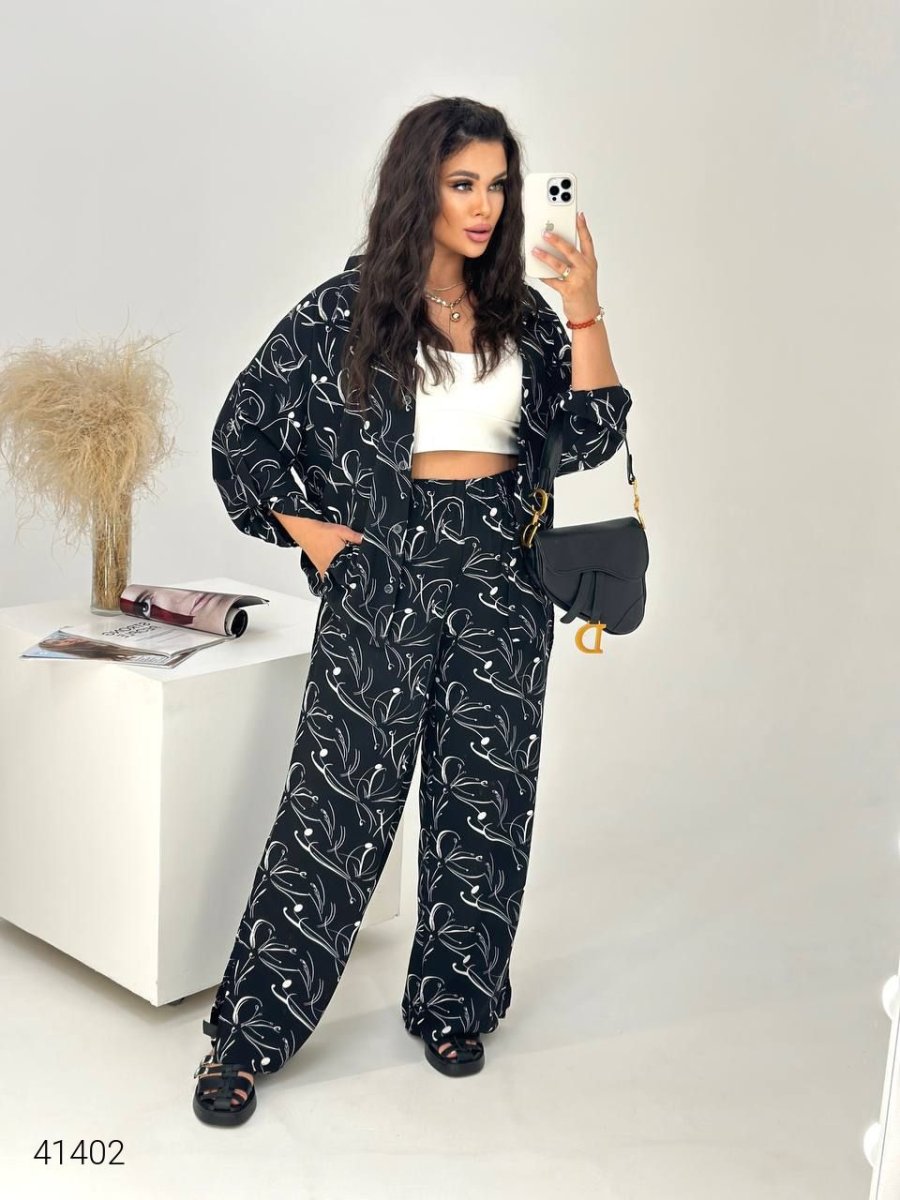 54-56 (Рубашка:ог-140 ,низ-130,длина-72/90,рукав-41.Брюки:от-84/124,об-136,длина-111)