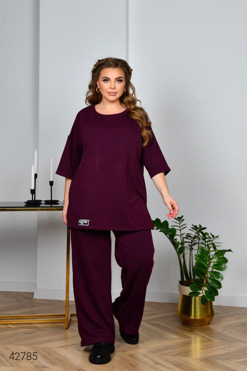 Женский костюм больших размеров 42785 бордовый