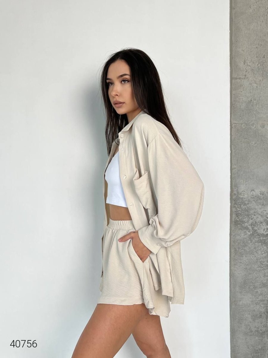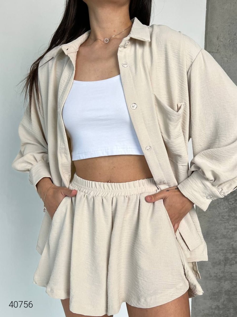 Женский костюм двойка с шортами 40756 светло-бежевый