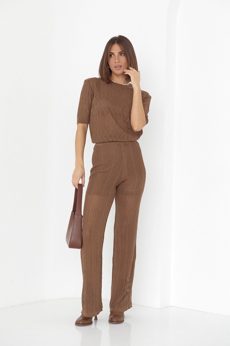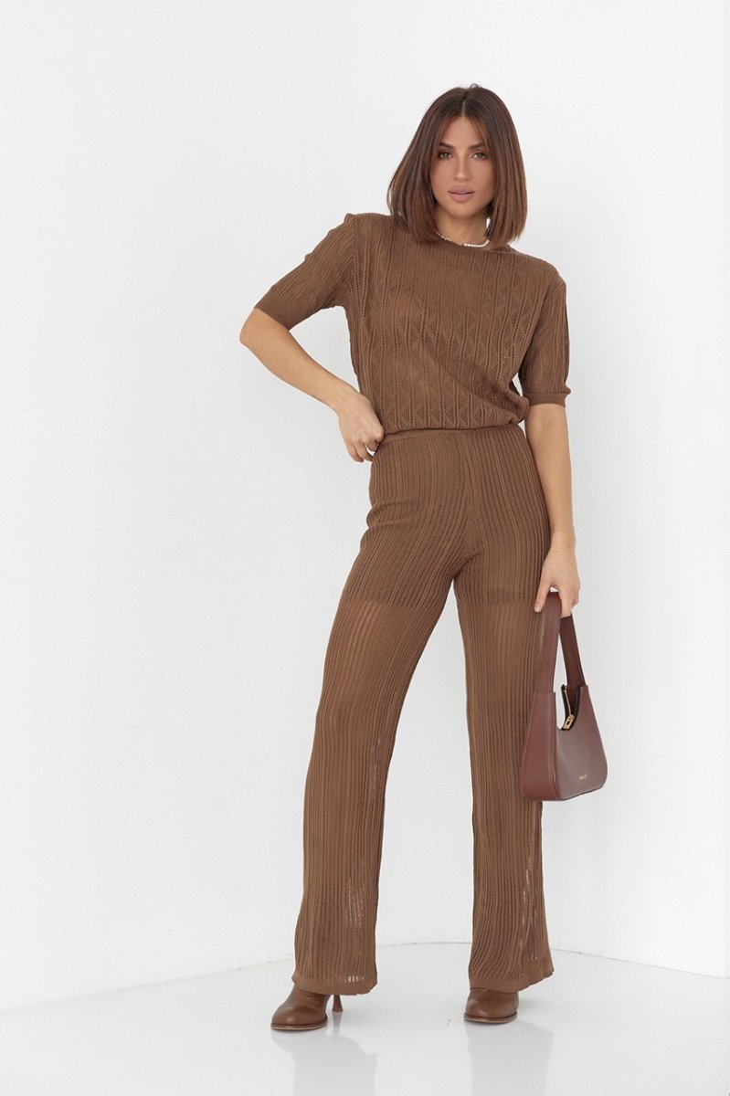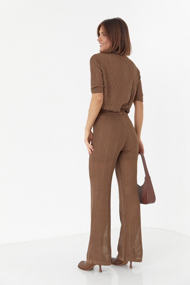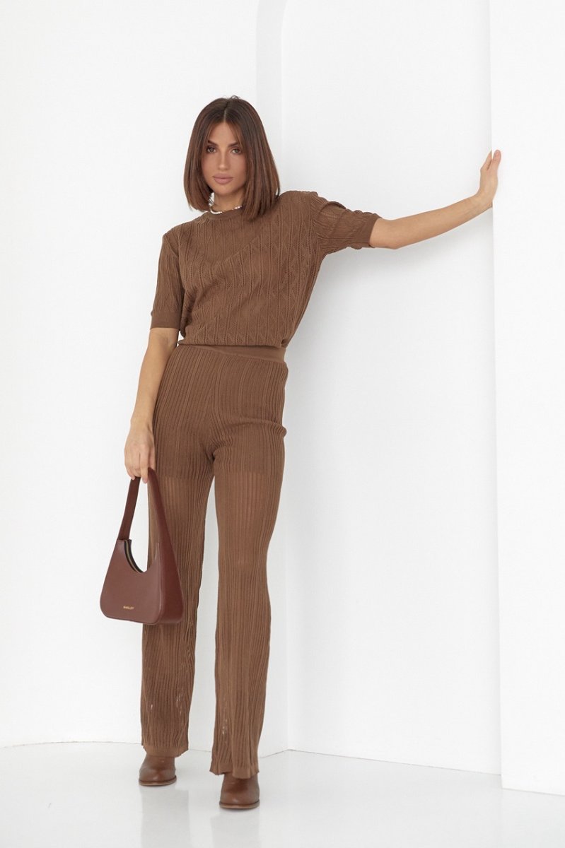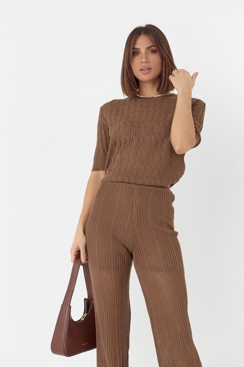 Создавать трендовые образы с максимальным комфортом в новом сезоне тебе поможет стильный брючный костюм с ажурной вязки.