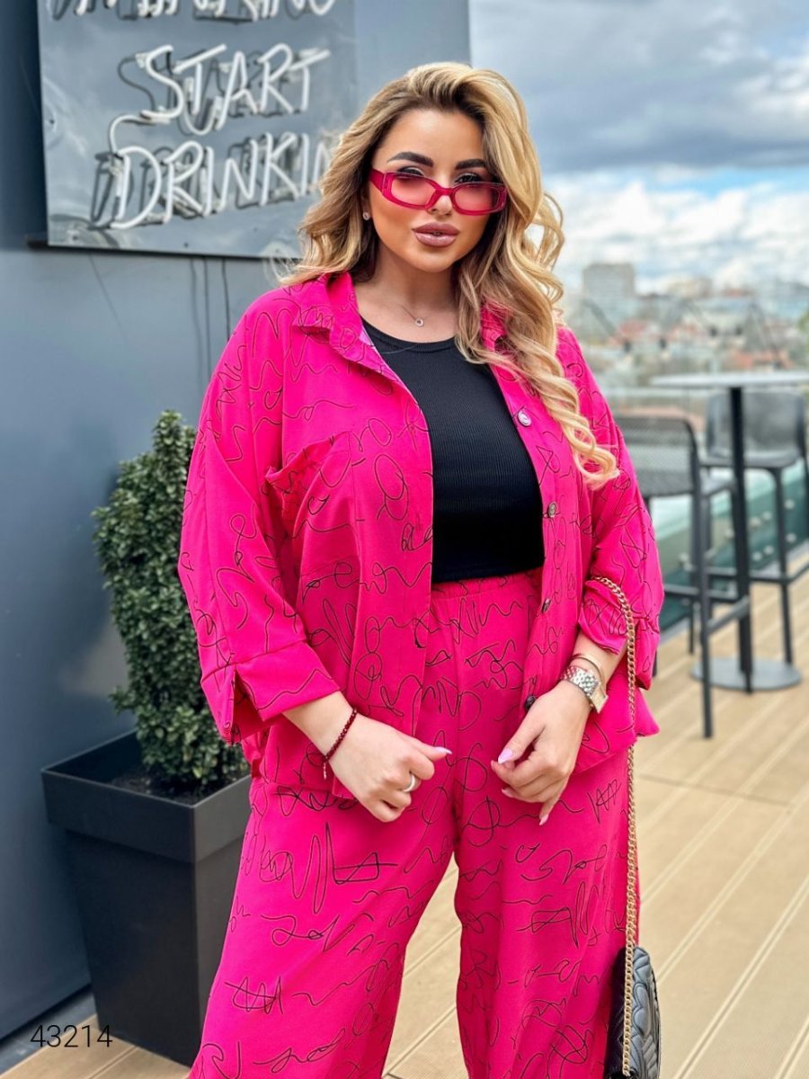 Женский костюм с принтом 43214 малиновый