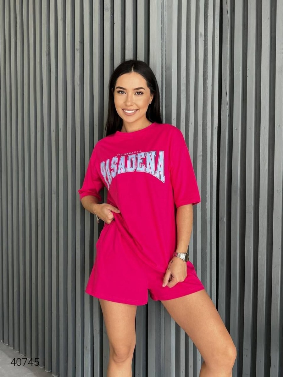 Женский костюм с шортами. Футболка с принтом и шорты. Свободный крой.