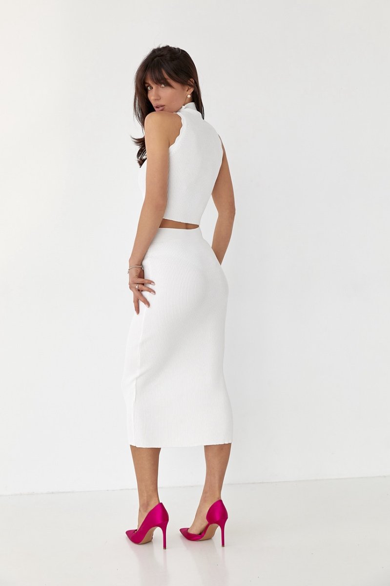 Женский костюм с топом и юбкой миди - 01051 молочный