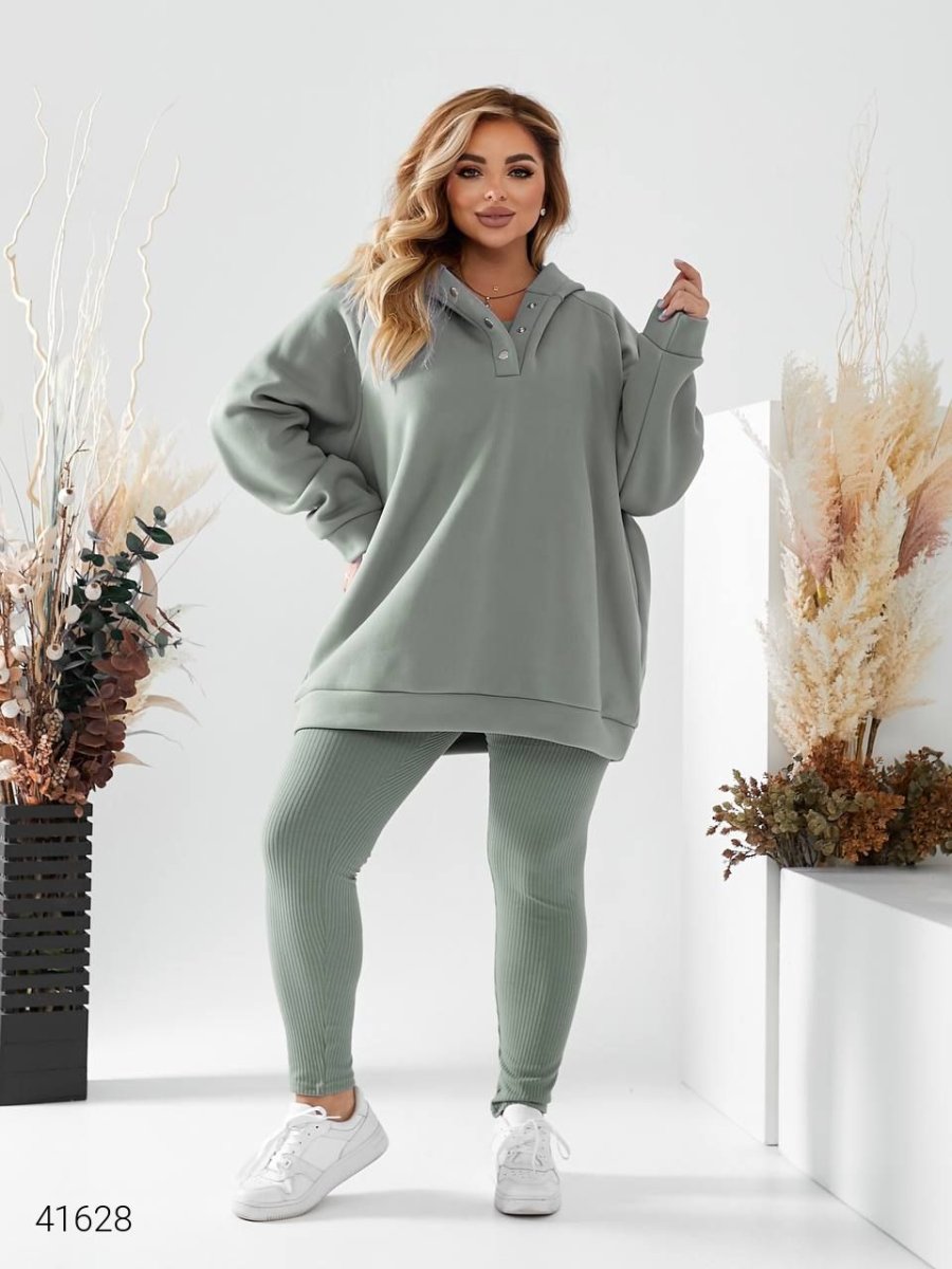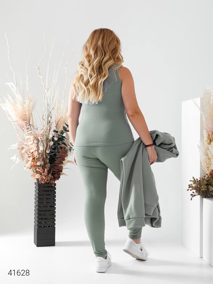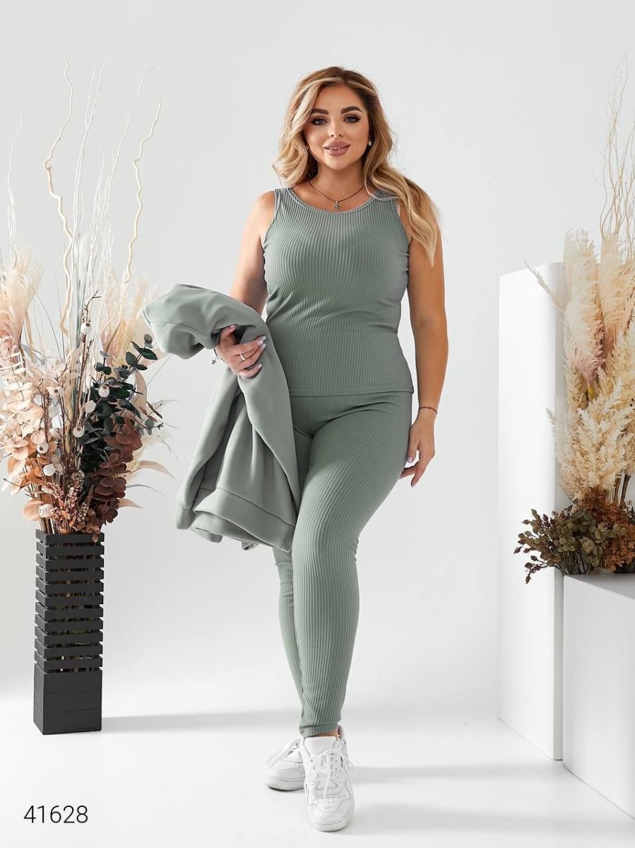 Женский костюм тройка. Ткань: худи - трикотаж трёхнить с начёсом, майка и лосины - трикотаж рубчик.