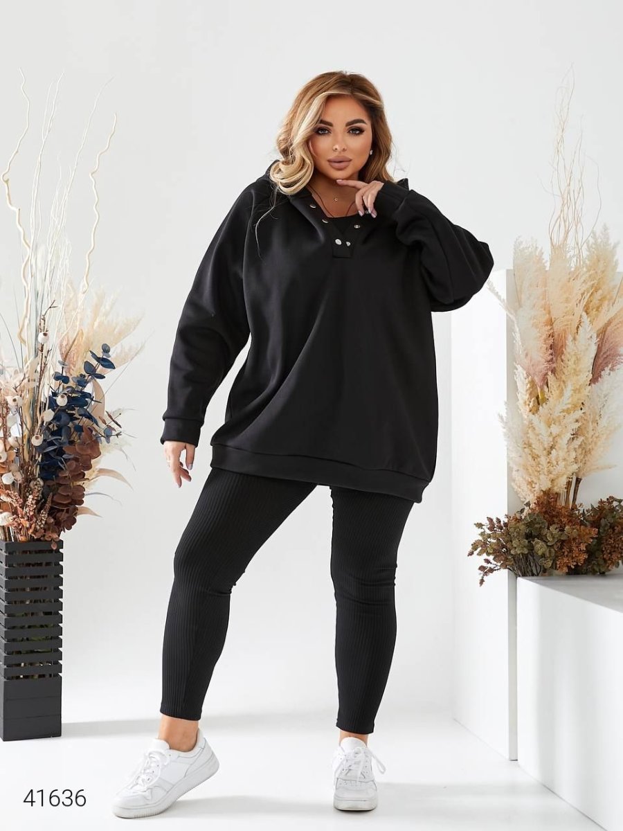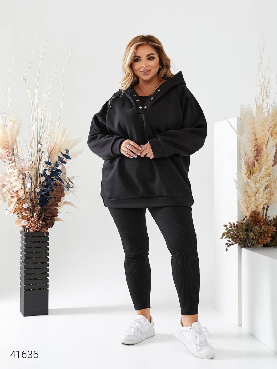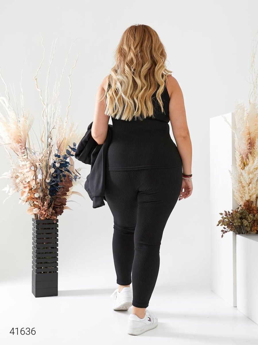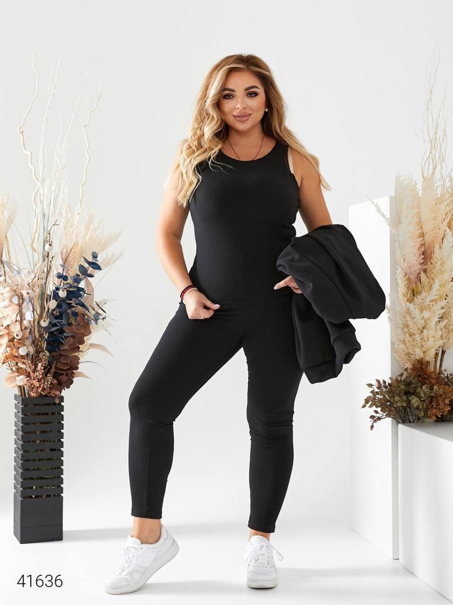 Женский костюм тройка. Ткань: худи - трикотаж трёхнить с начёсом, майка и лосины - трикотаж рубчик.