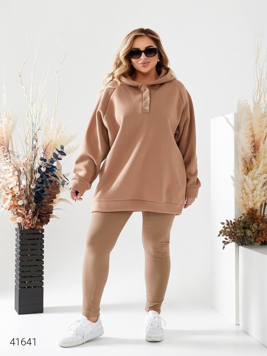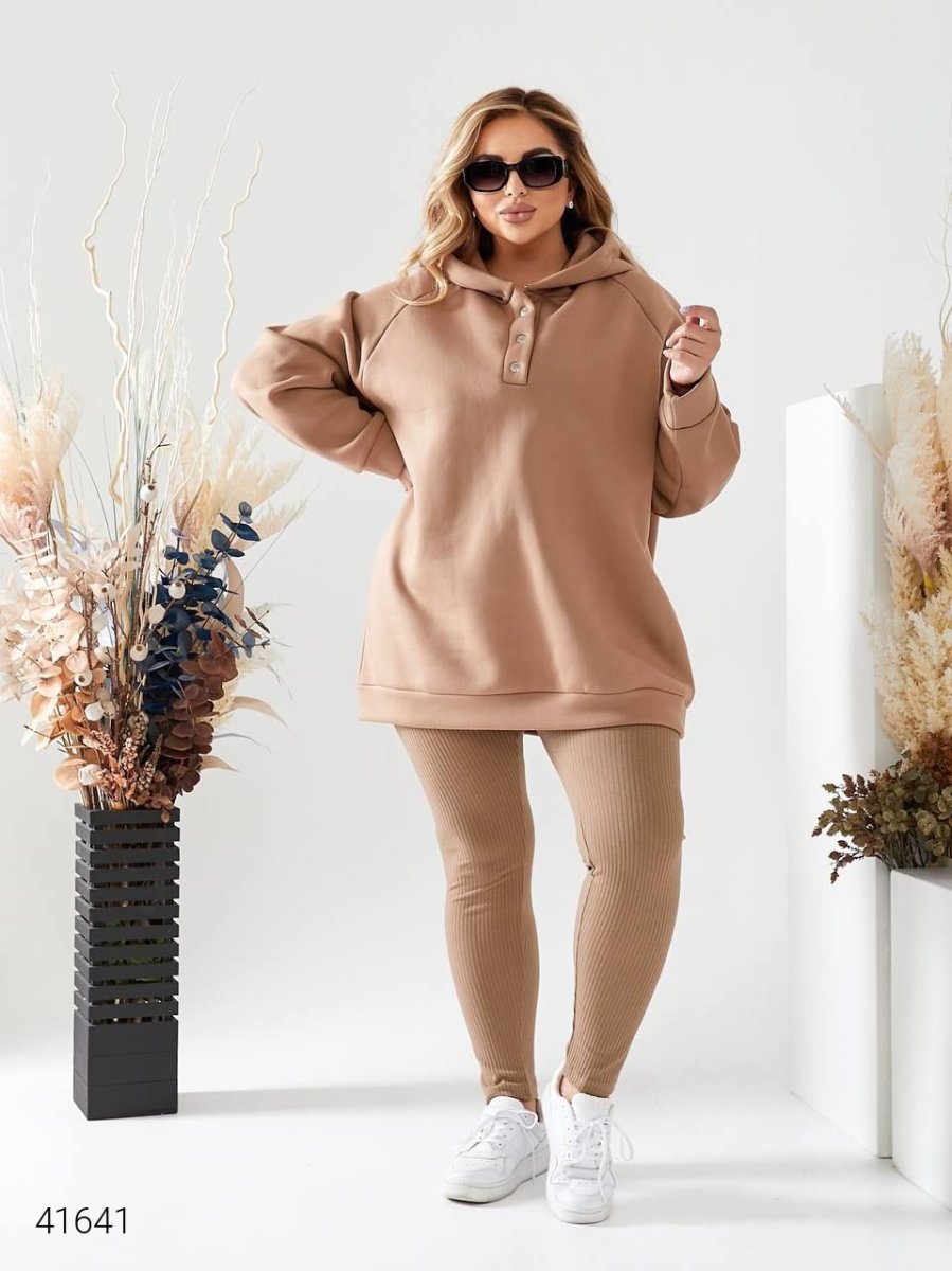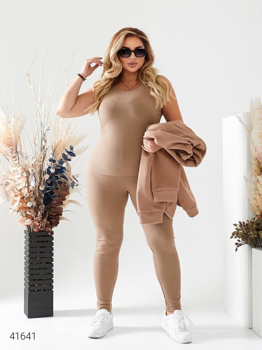 Женский костюм тройка. Ткань: худи - трикотаж трёхнить с начёсом, майка и лосины - трикотаж рубчик.