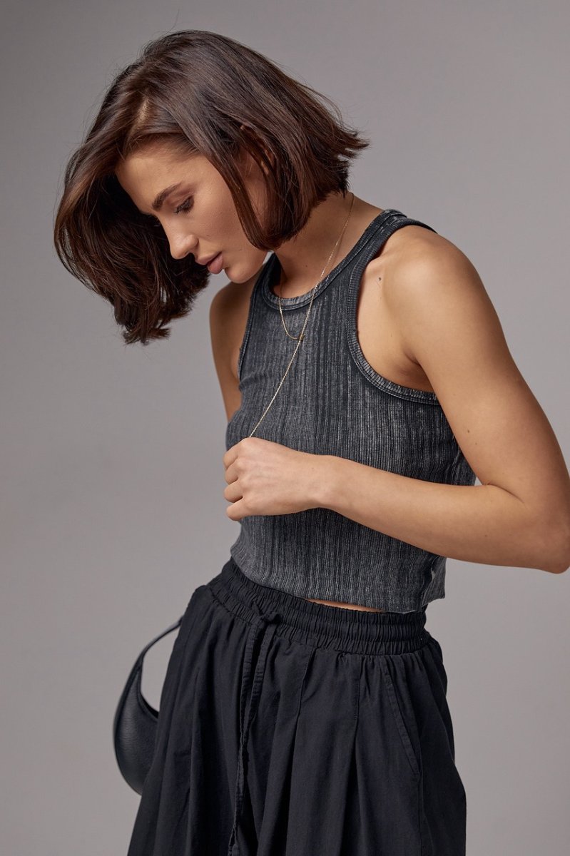 Эта майка имеет необработанный низ, что добавляет ей особенный шарм и непринужденный вид. Окантовка на проймах и горловине придает изделию аккуратный и завершенный вид.