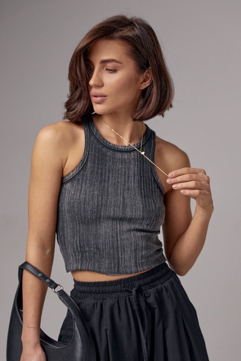 Женский топ-майка с эластичного трикотажа - 060149 светло-серый