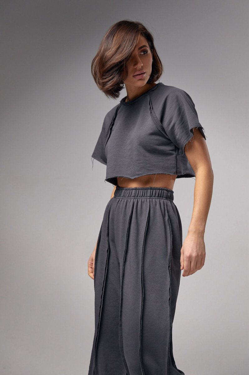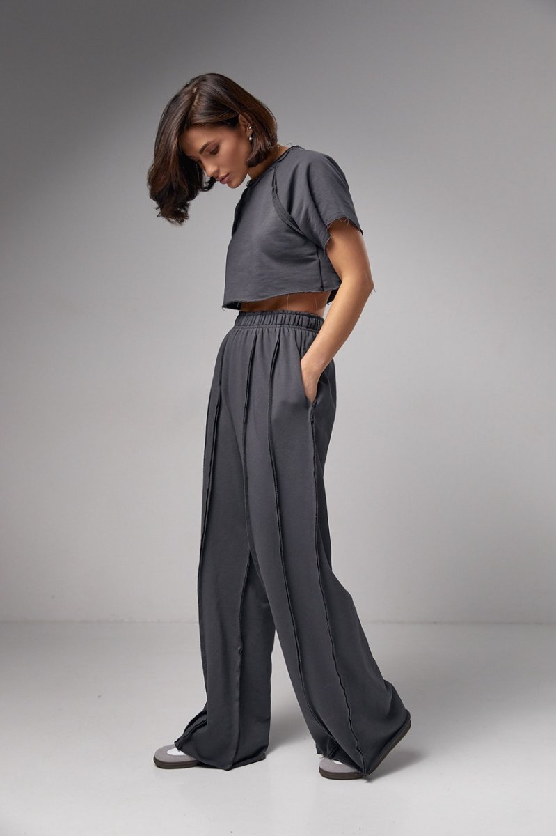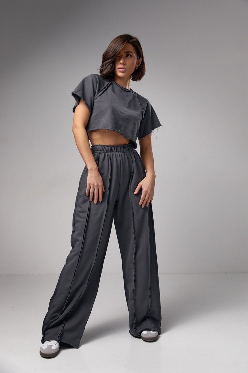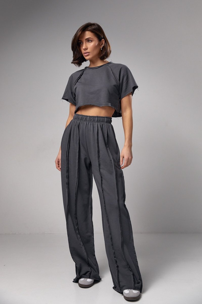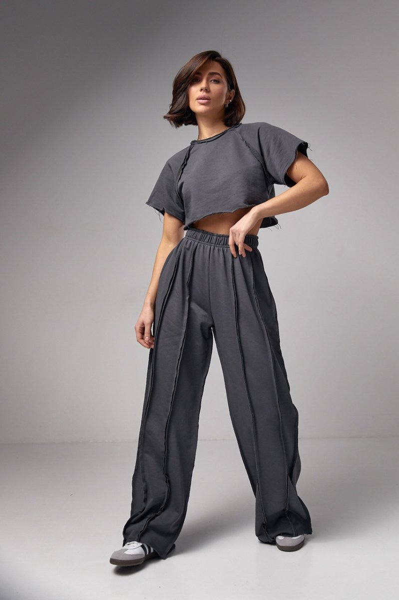 Женский трикотажный костюм в стиле гранж - это оригинальная модель, которая позволяет вам экспериментировать со своим образом и выражать свой уникальный стиль. Этот комплект станет настоящим акцентом вашего гардероба благодаря своим особенностям - свободному фасону и швами наружу.