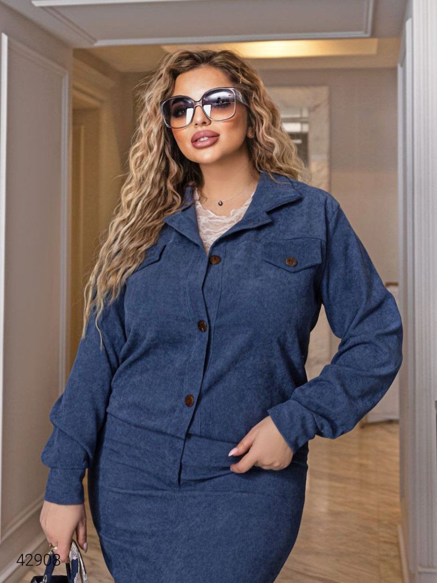 Женский вельветовый костюм с юбкой 42915 фрезовый